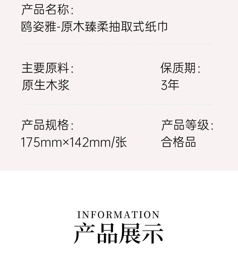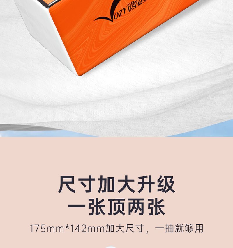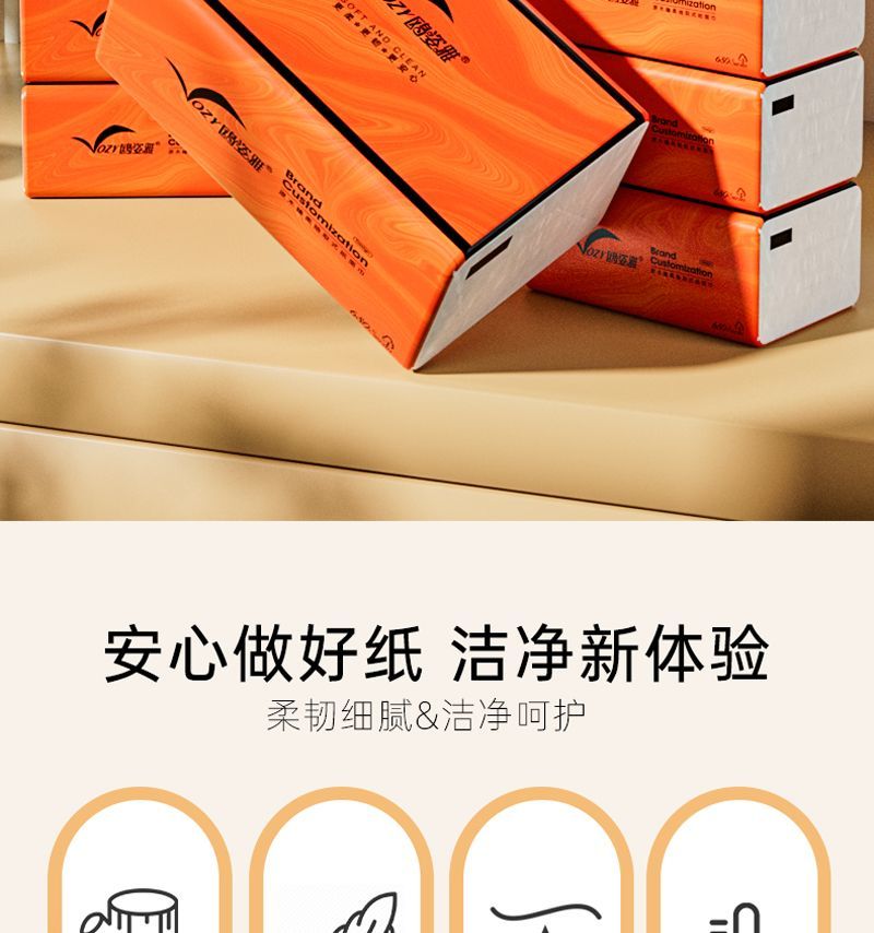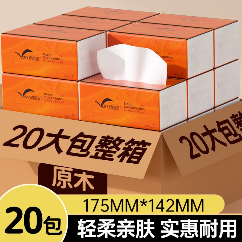 品牌: OZY/鸥姿雅 发货地: 广西壮族自治区/南宁市 层数: 5层 单包抽数: 70抽 包(盒)数: 20包 尺寸: 142X175mm 原料成分: 木浆 是否印花: 印花 适用场合: 家用 ;商用 是否支持定制: 不支持定制 是否可悬挂: 不可悬挂 产品等级: 合格品 重量: 0.5 kg/件