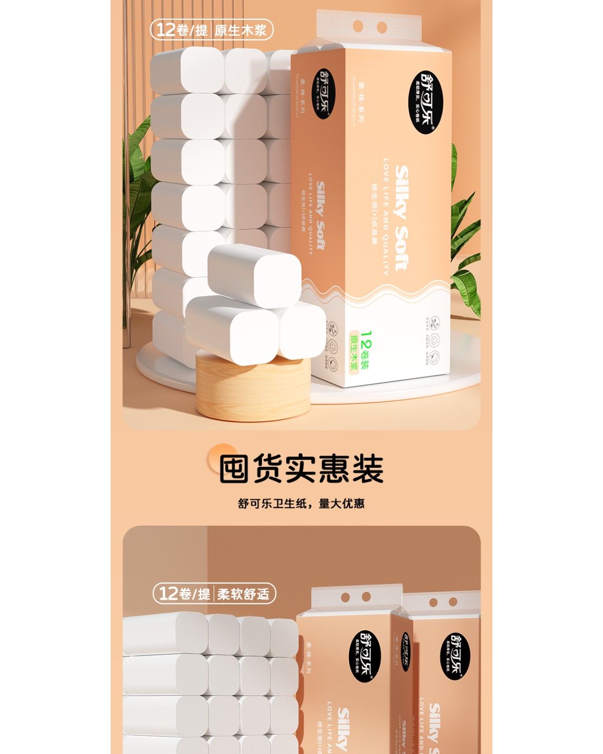 舒可乐原木浆无芯卷纸家用餐巾纸面巾纸妇婴卫生纸实惠装