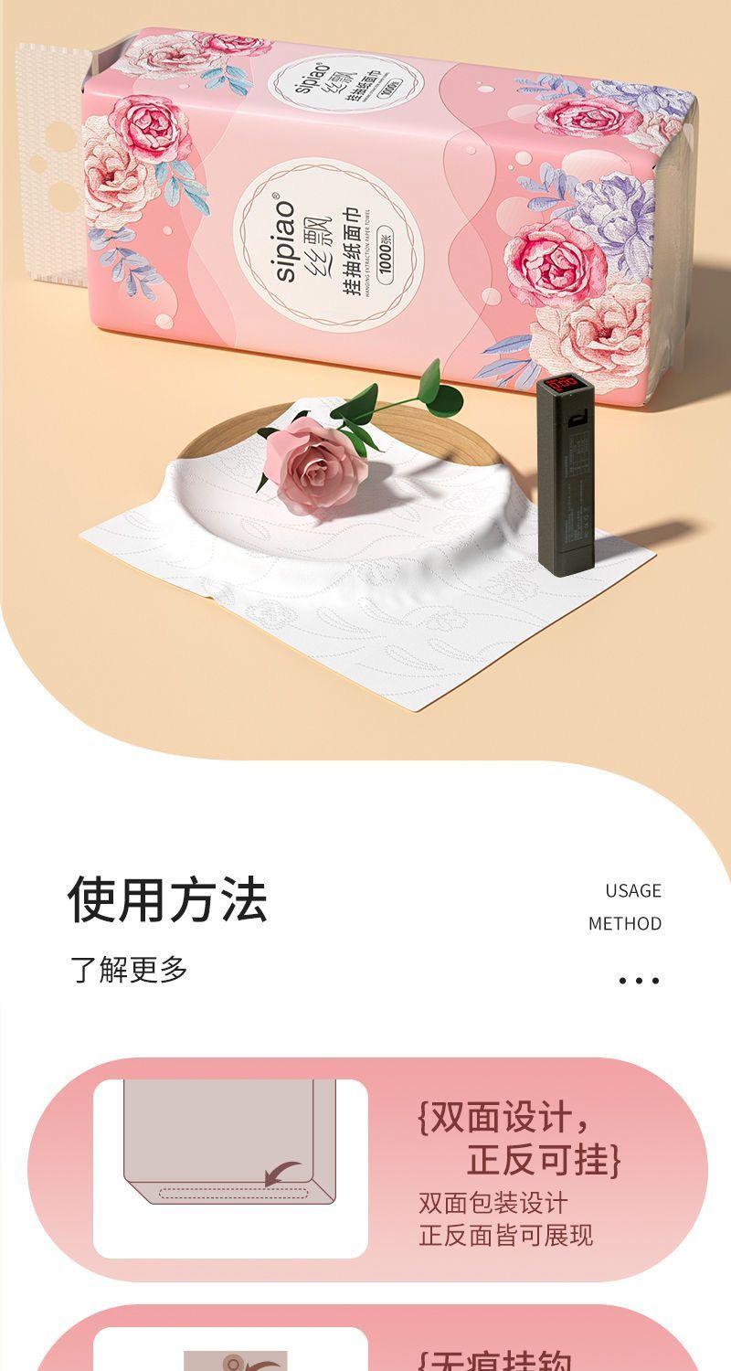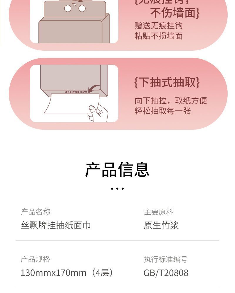 品牌: 丝飘 发货地: 广西壮族自治区/南宁市 层数: 4层 单包抽数: 250抽 包(盒)数: 10包 尺寸: 170X130mm 原料成分: 木浆 是否印花: 印花 适用场合: 家用 ;商用 是否支持定制: 不支持定制 是否可悬挂: 可悬挂 产品等级: 合格品 重量: 0.5 kg/件