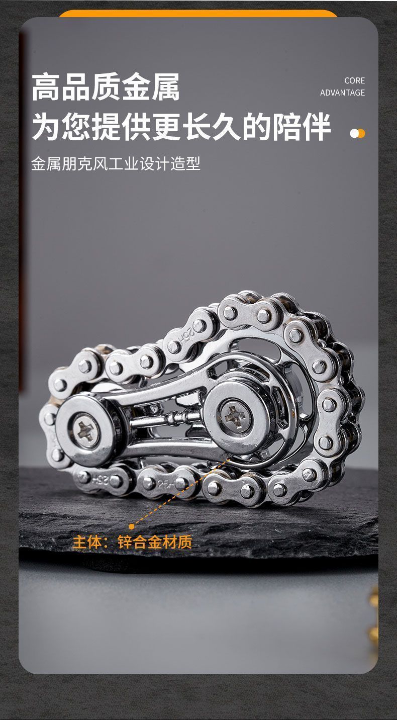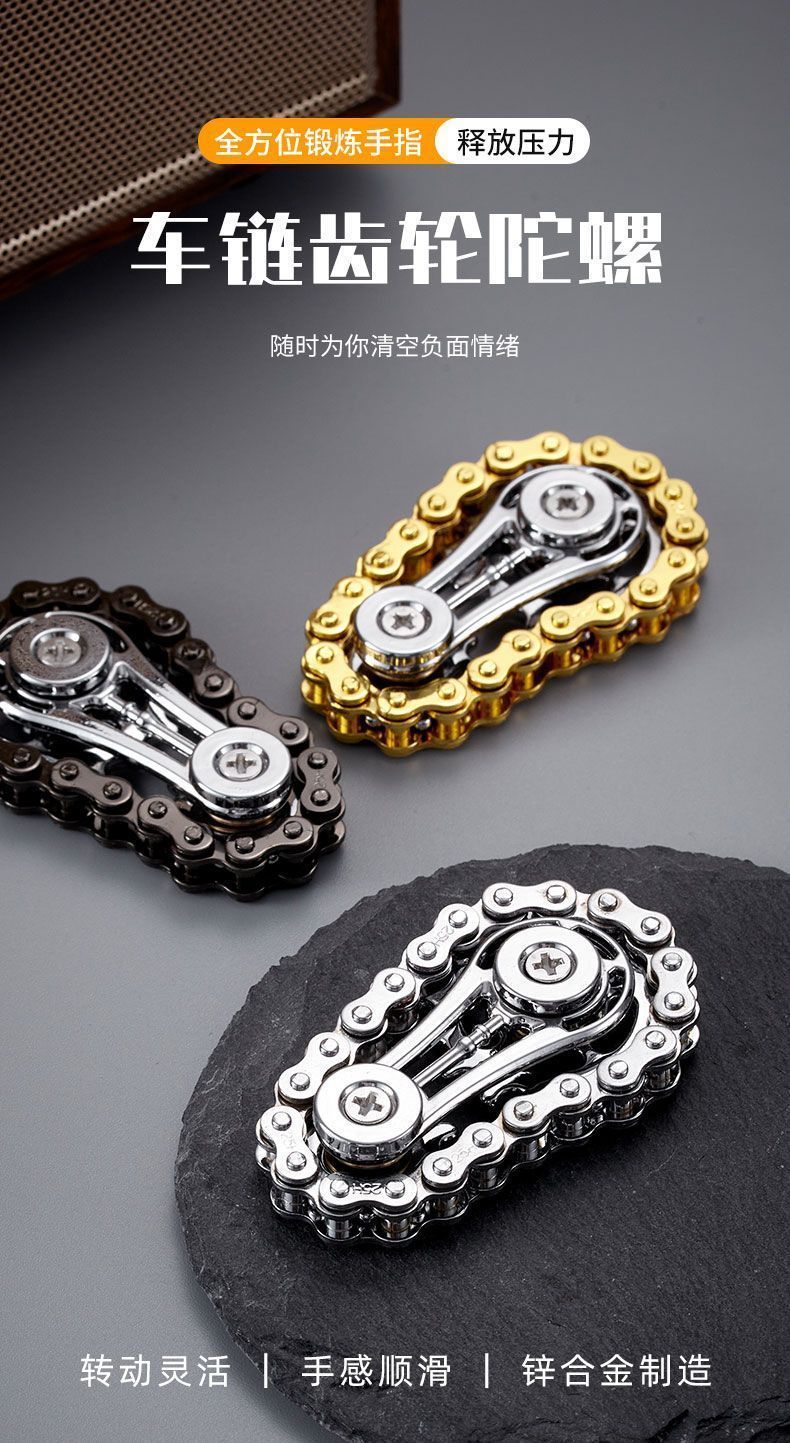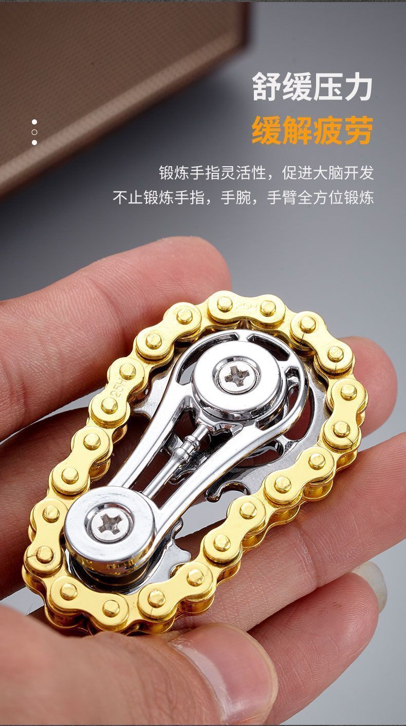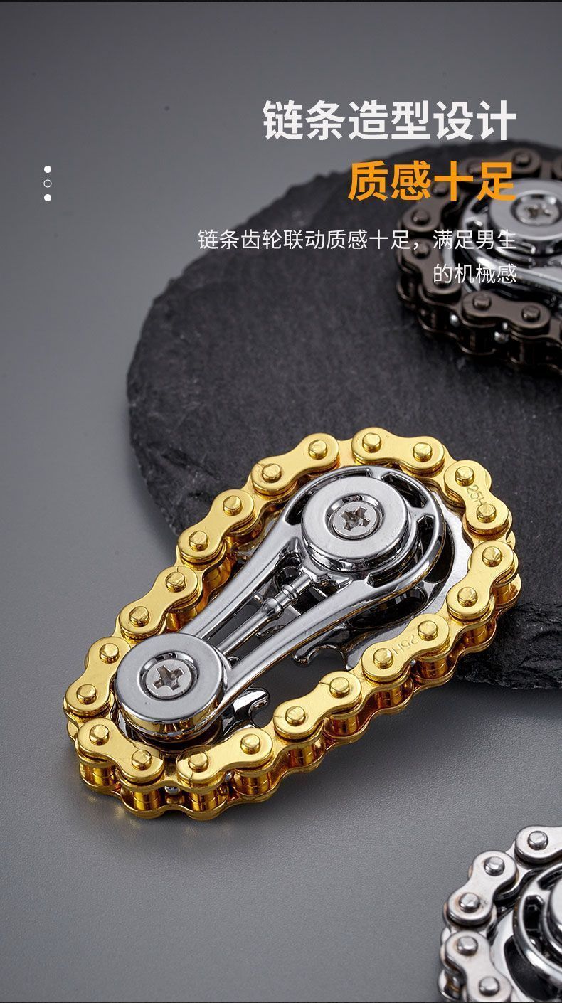 减压手指链齿飞轮链条指尖陀螺无聊解压神器齿轮联动机械金属玩具