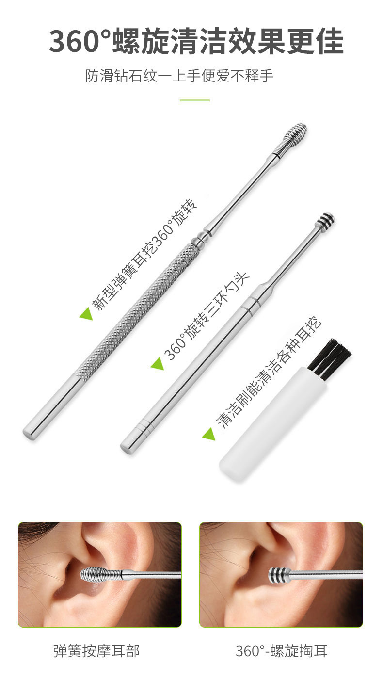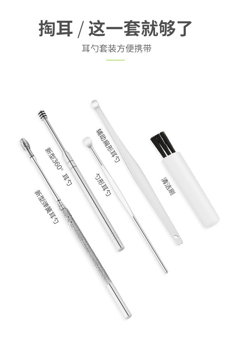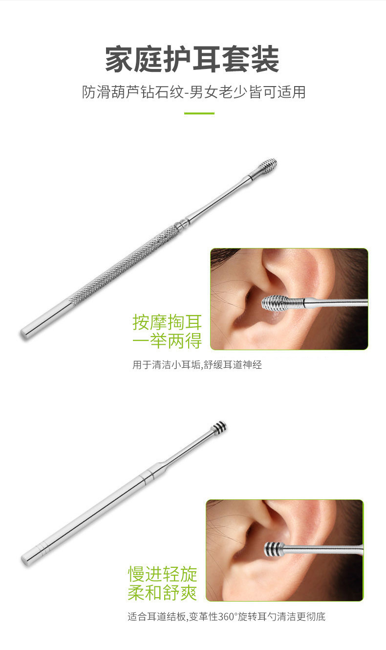 掏耳勺六件套挖耳勺采耳工具耳勺不锈钢双头螺旋式弹簧钢挖勺套装