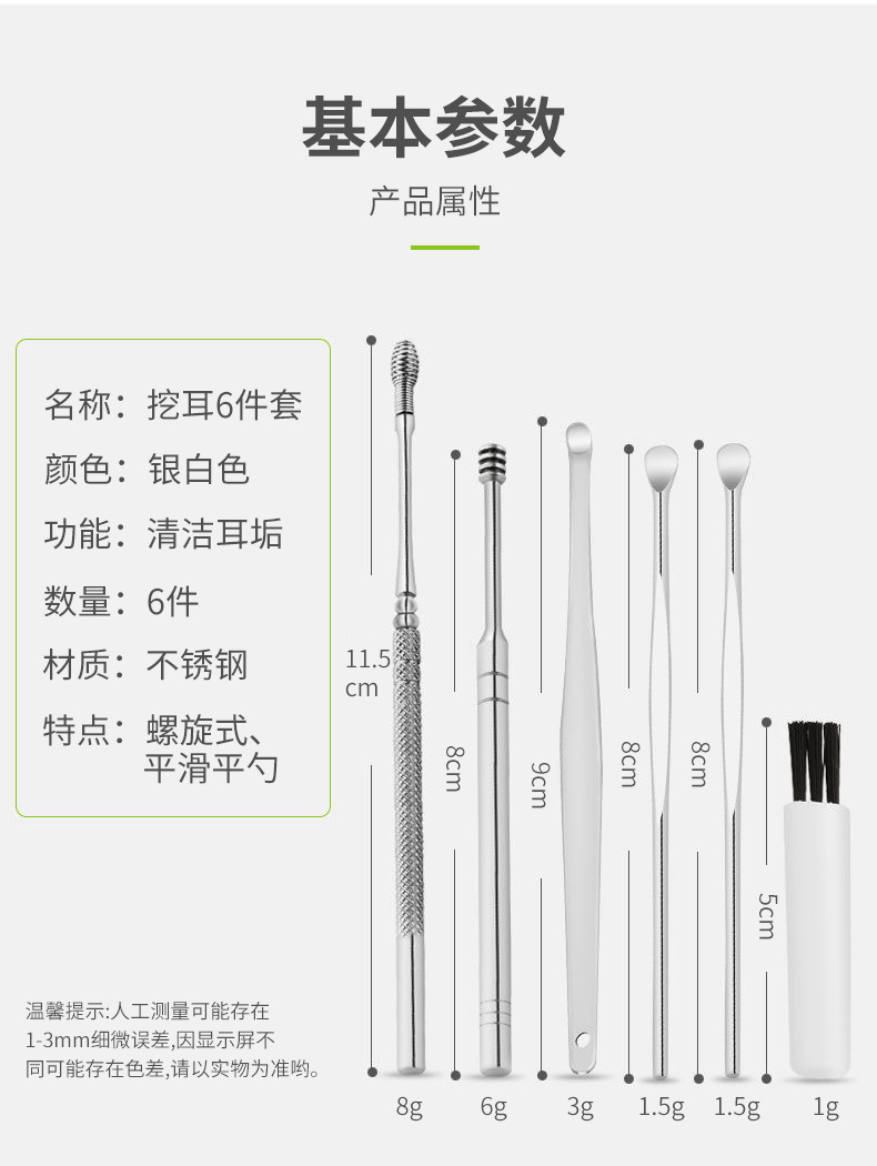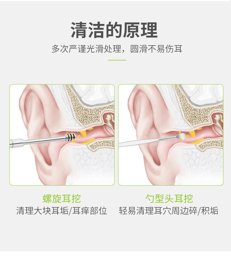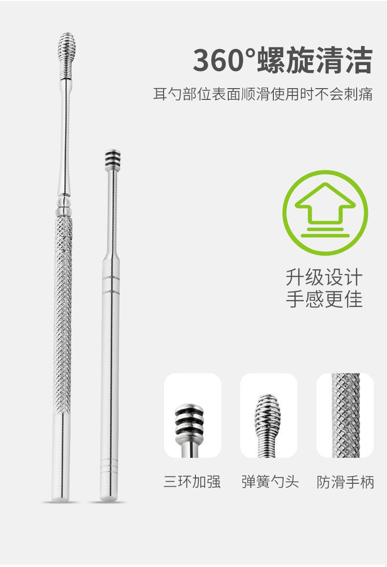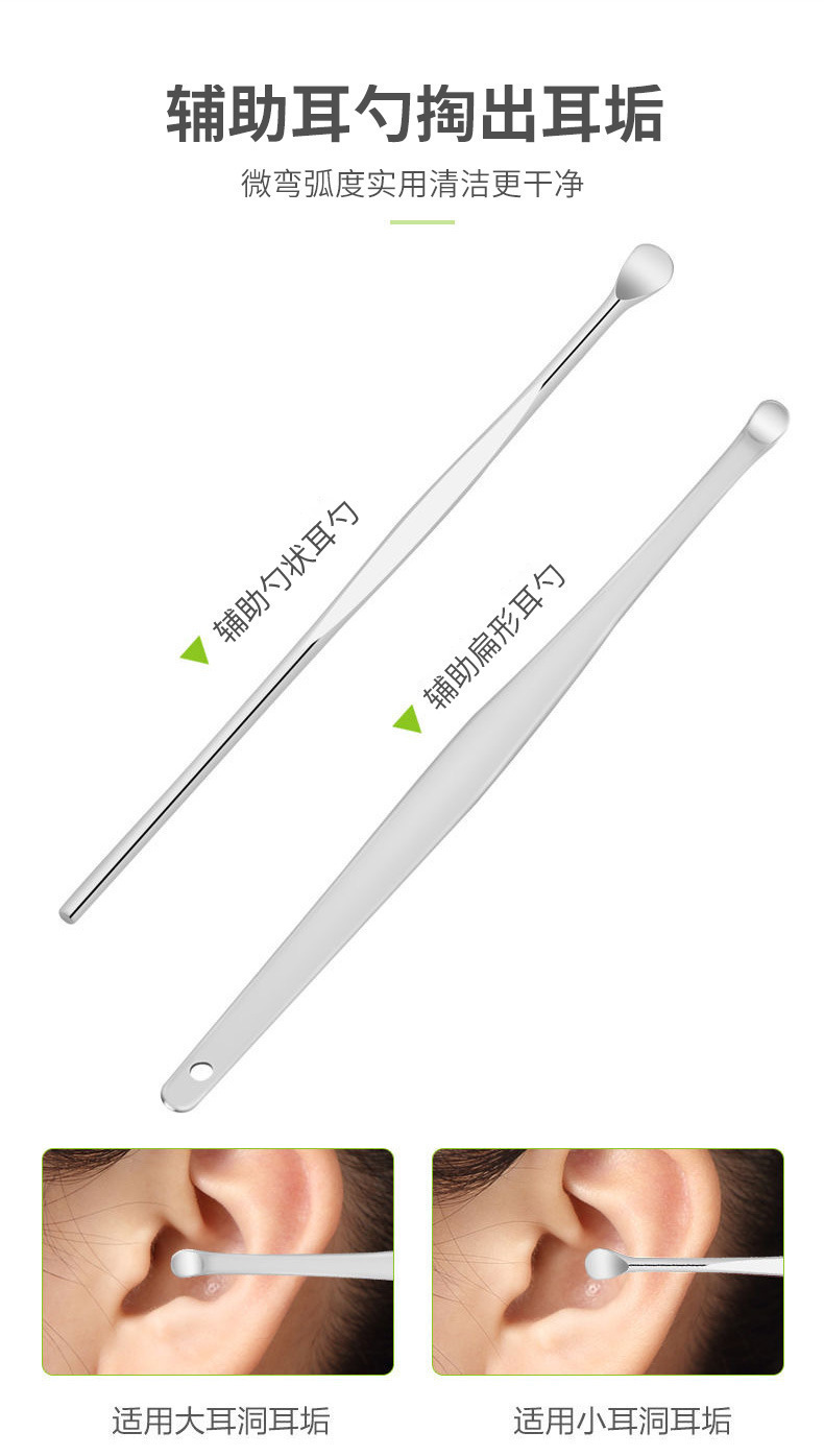 掏耳勺六件套挖耳勺采耳工具耳勺不锈钢双头螺旋式弹簧钢挖勺套装