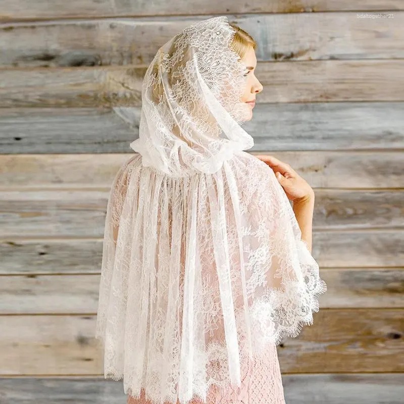 新娘头巾婚礼披肩穆斯林围巾象牙色蕾丝丝巾大尺寸宽松款民族盖头