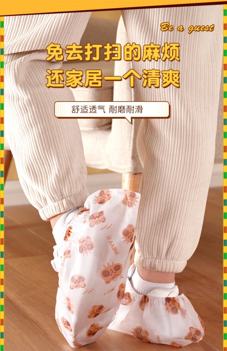 点断式一次性鞋套无纺布成人卡通印花加厚耐磨防滑机房室内用脚套 投诉