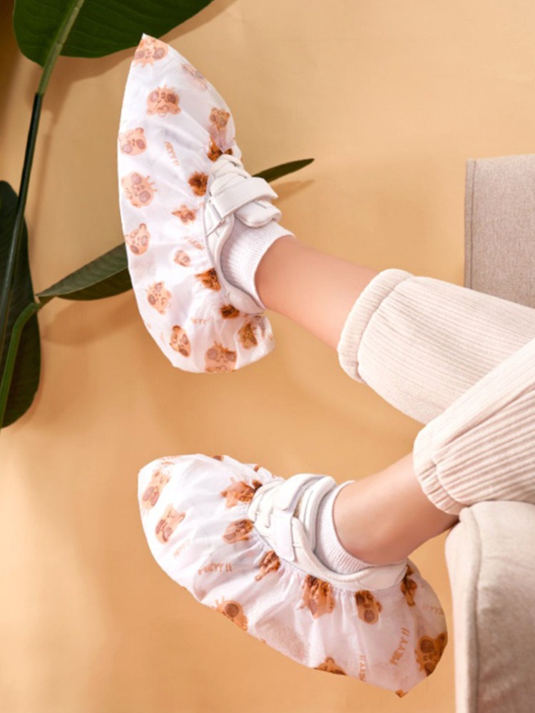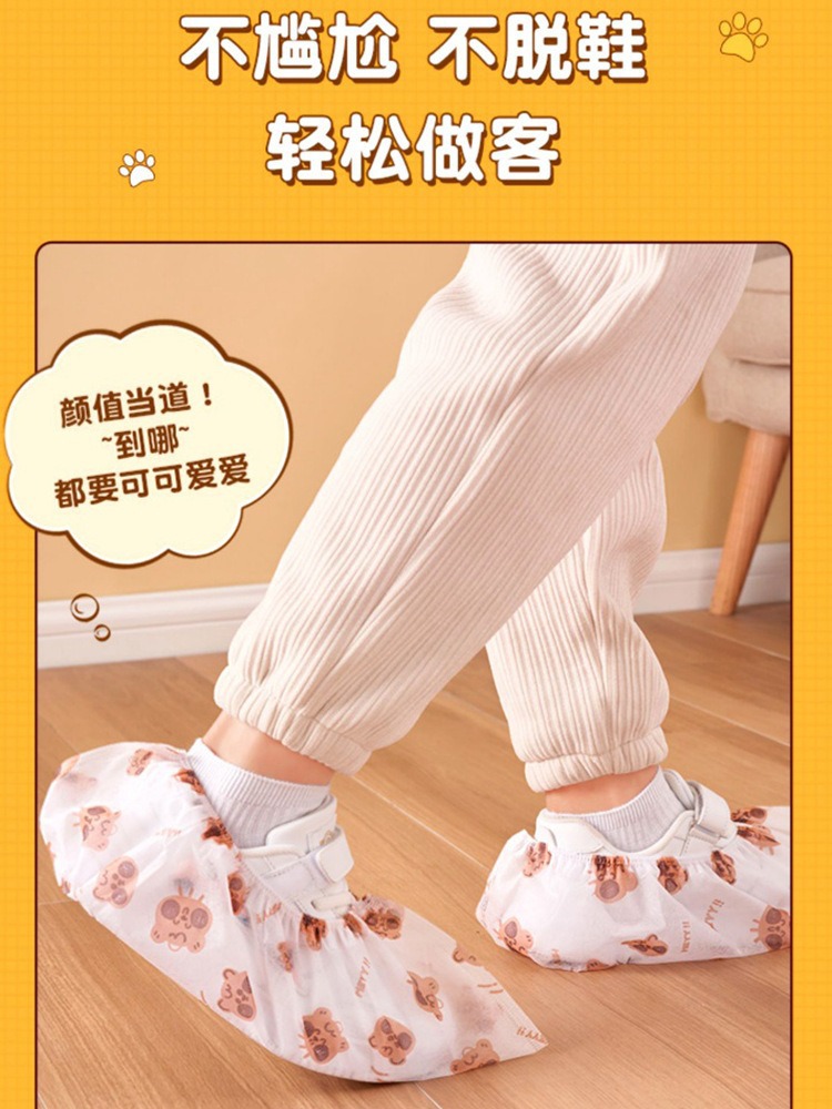 点断式一次性鞋套无纺布成人卡通印花加厚耐磨防滑机房室内用脚套