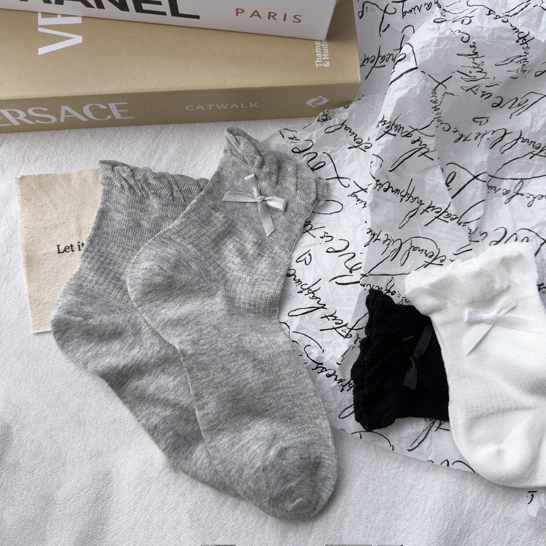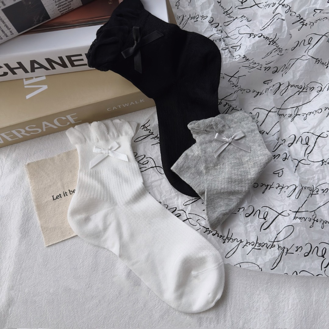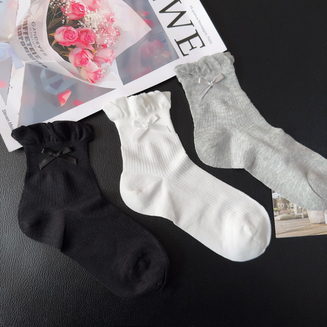 蝴蝶结花边潮袜舒适百搭透气吸汗