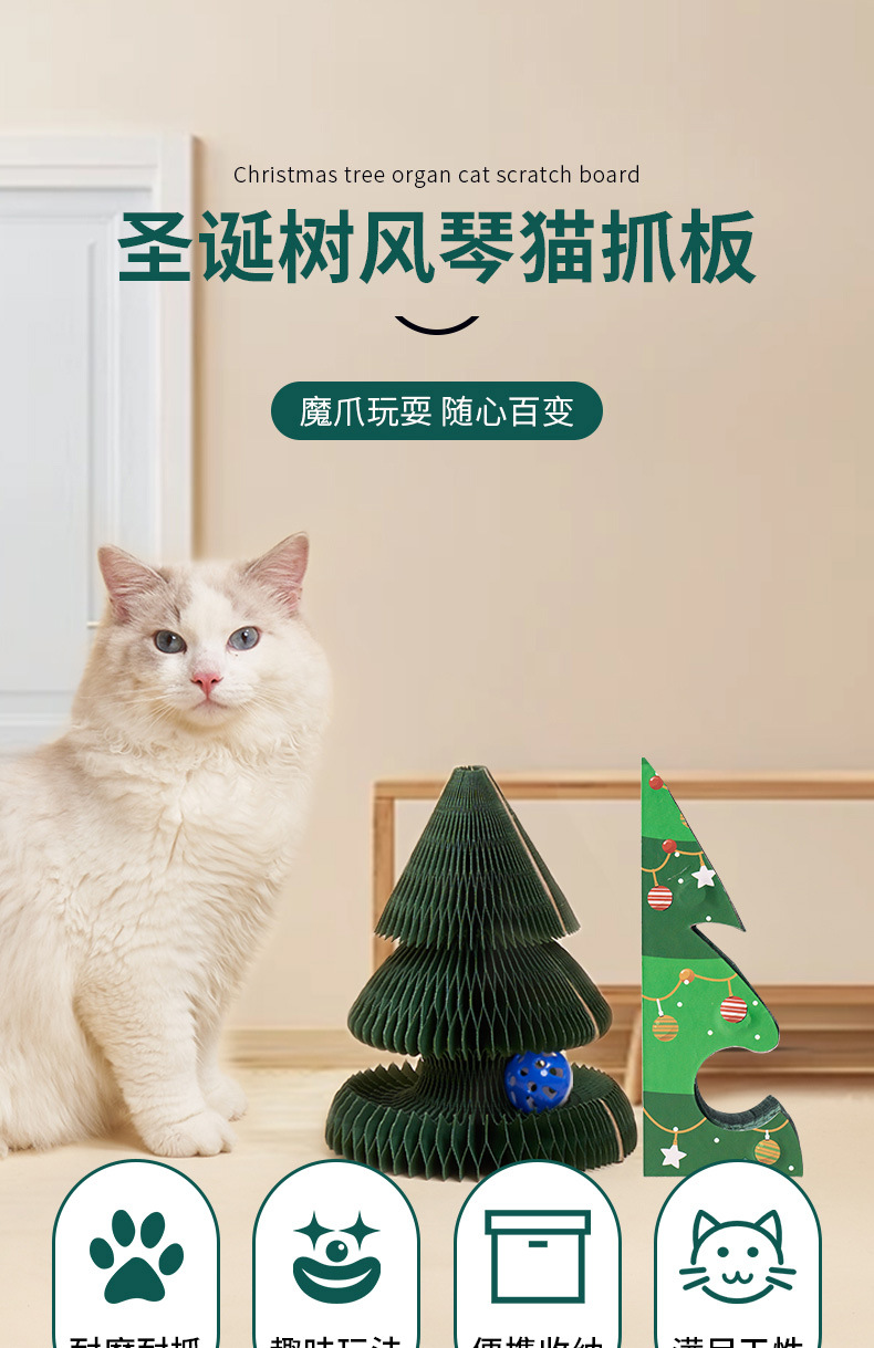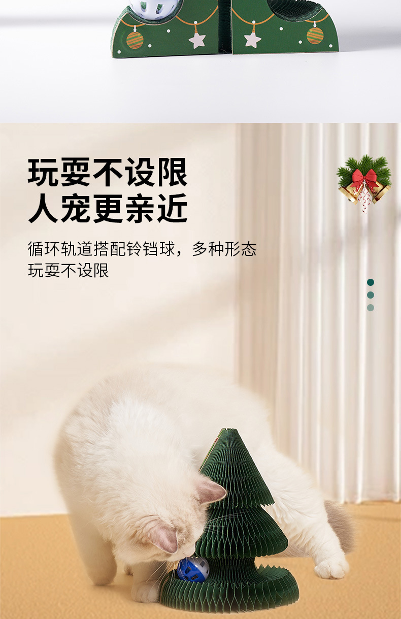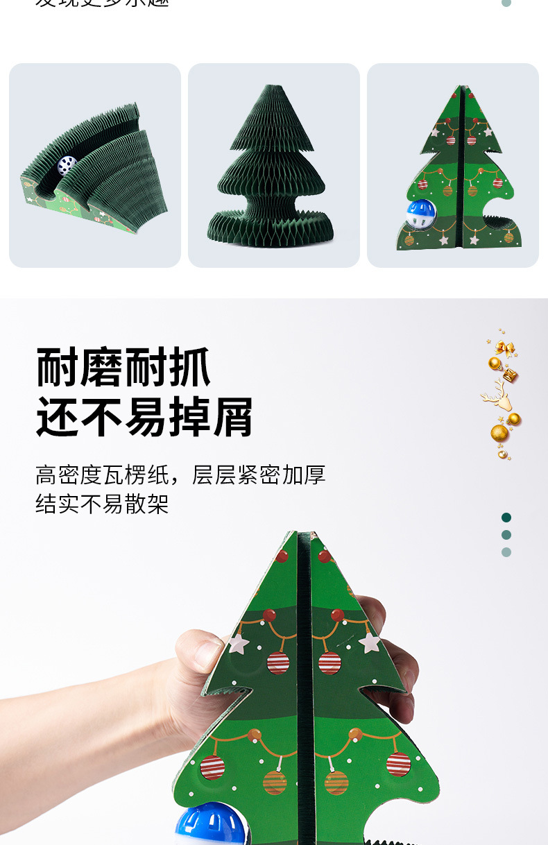 圣诞节立式贴墙耐磨不掉屑可折叠猫玩具自嗨解闷圣诞树风琴猫抓板 投诉