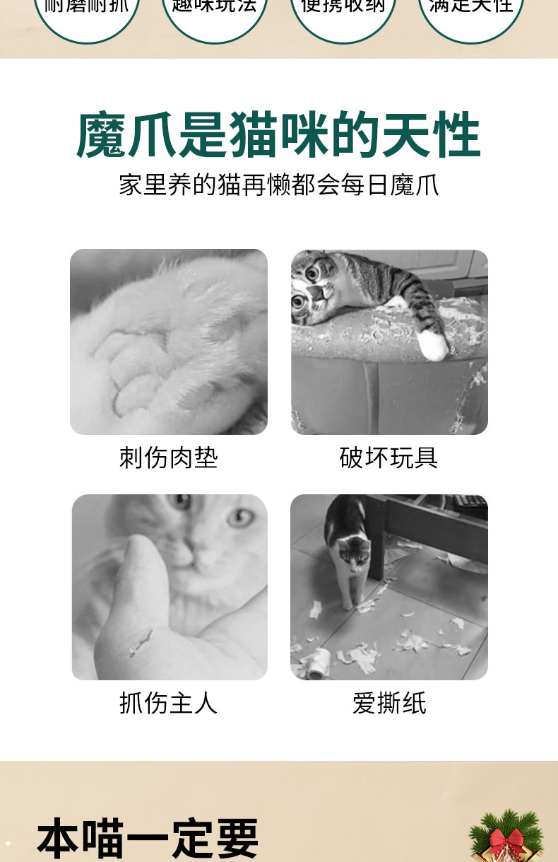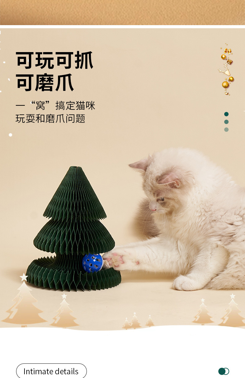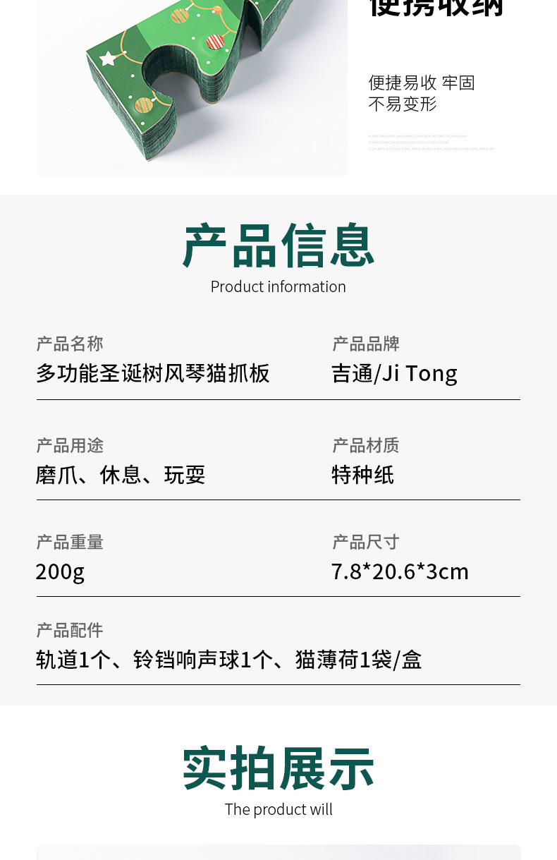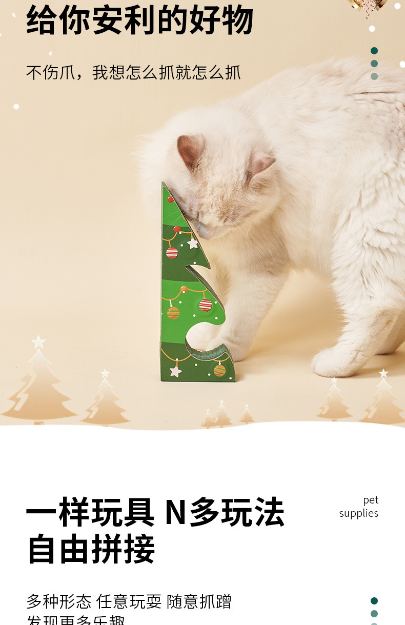 圣诞节立式贴墙耐磨不掉屑可折叠猫玩具自嗨解闷圣诞树风琴猫抓板 投诉