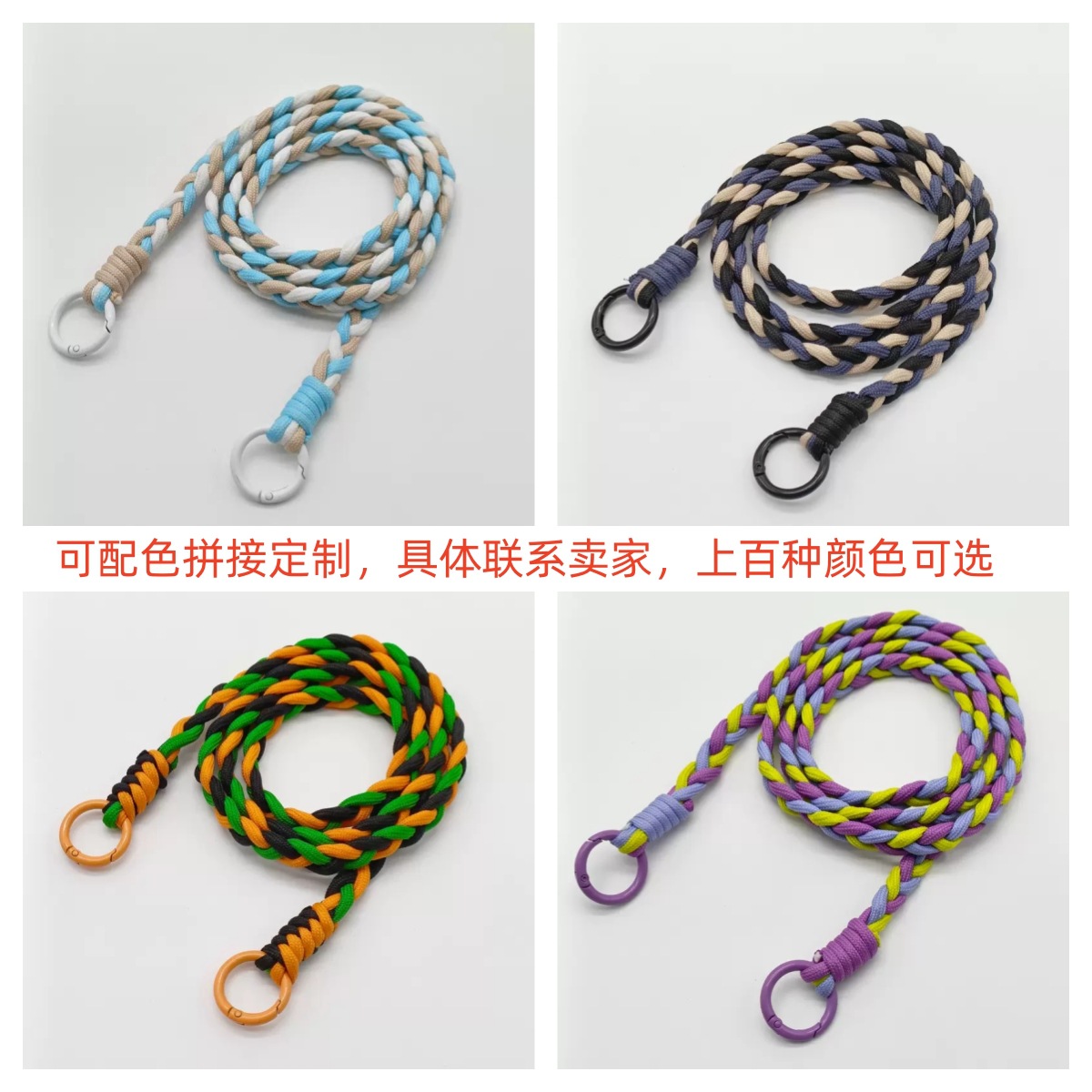 • 义乌市米粒手工编织挂绳拼色手机挂绳包包吊绳挂件手机钥匙圈钥匙挂件