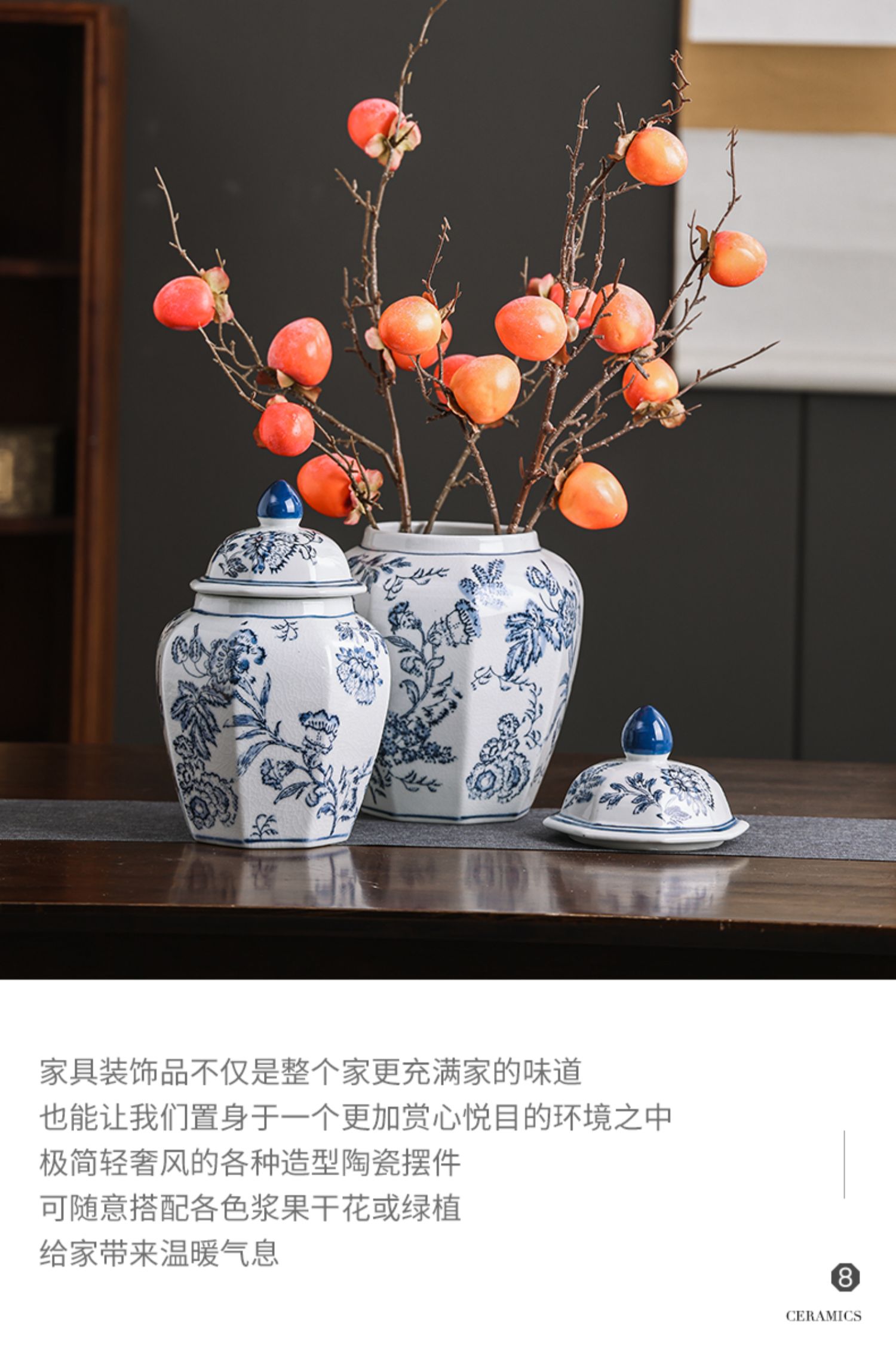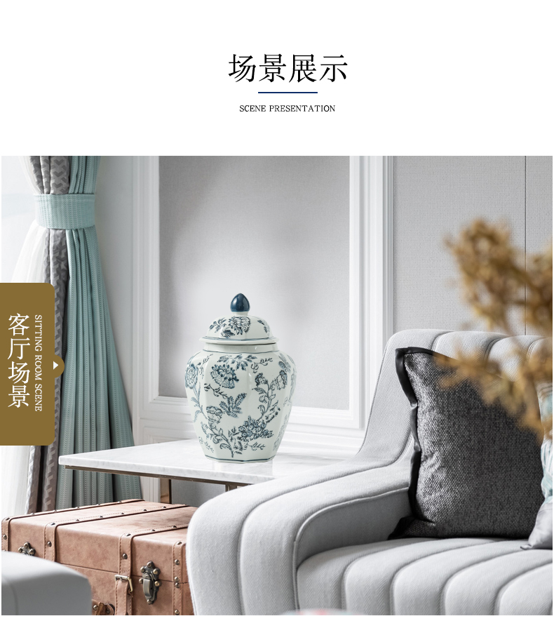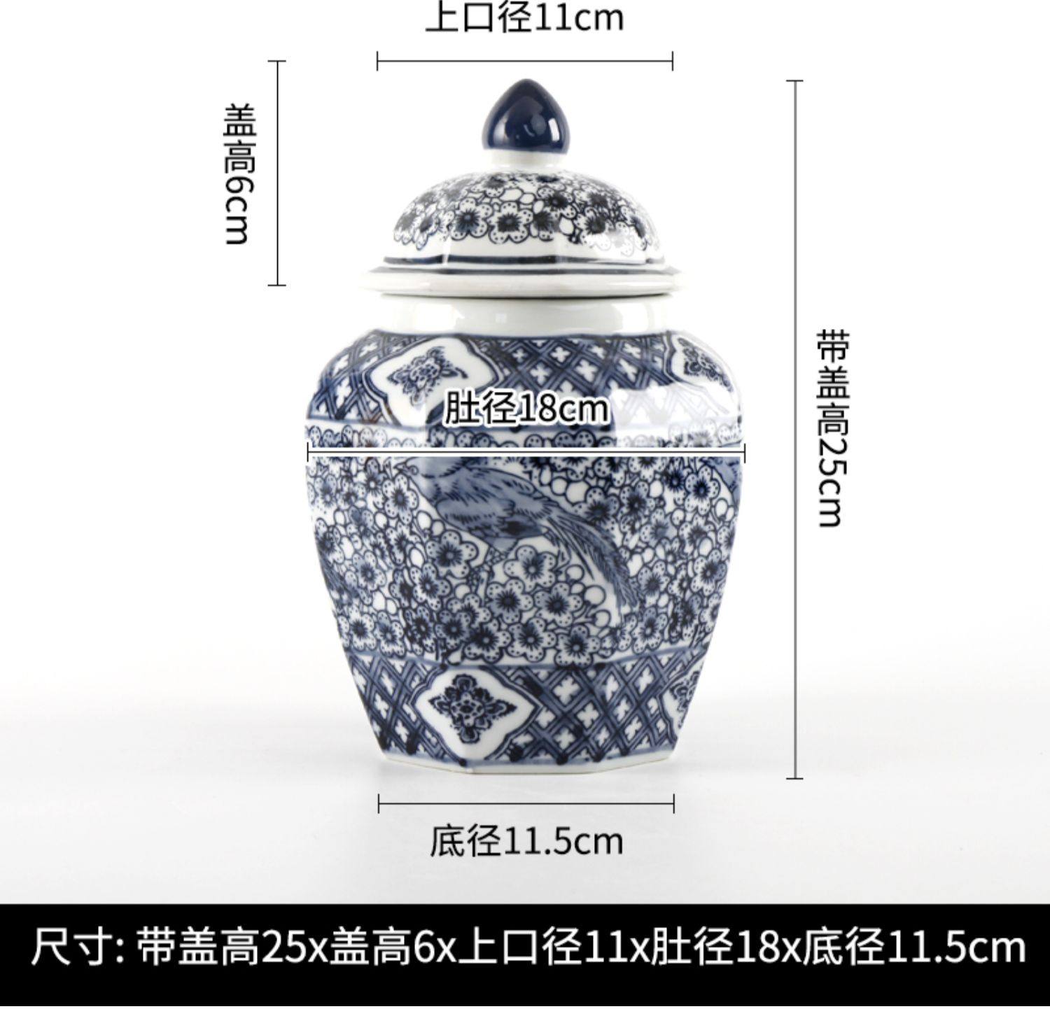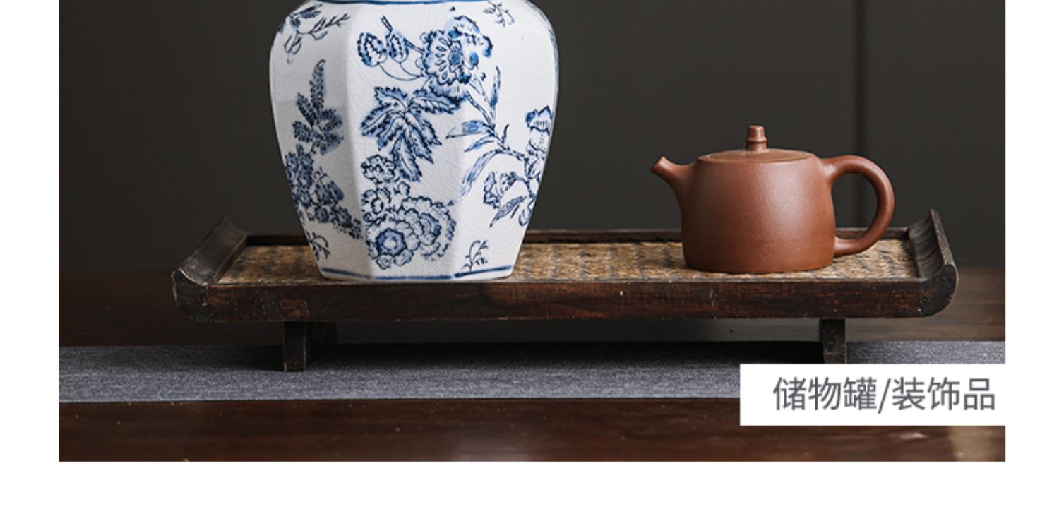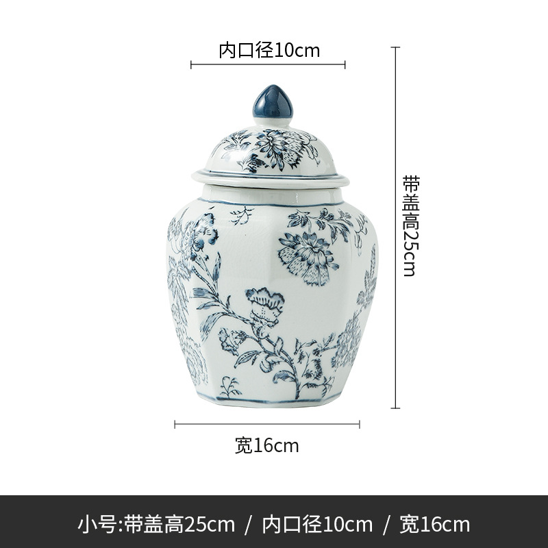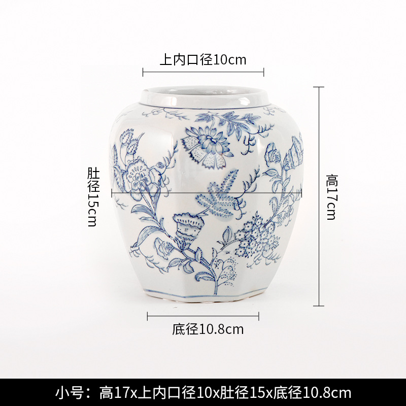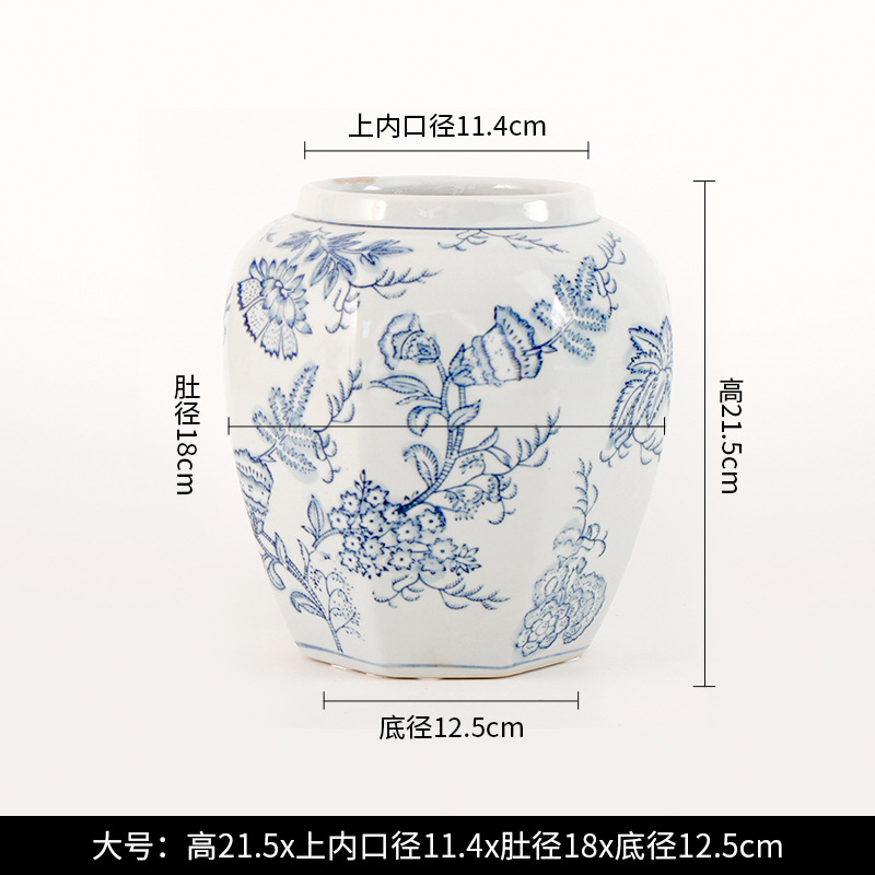 现货青花瓷手绘缠枝花纹八角将军罐客厅陶瓷摆件仿古装饰景德镇陶 English | 投诉