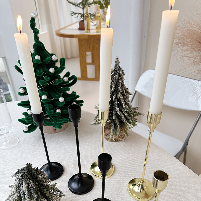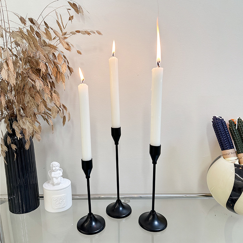 三件套北欧ins复古铁艺烛台摆件蜡烛餐桌浪漫婚庆烛光晚餐摆饰。