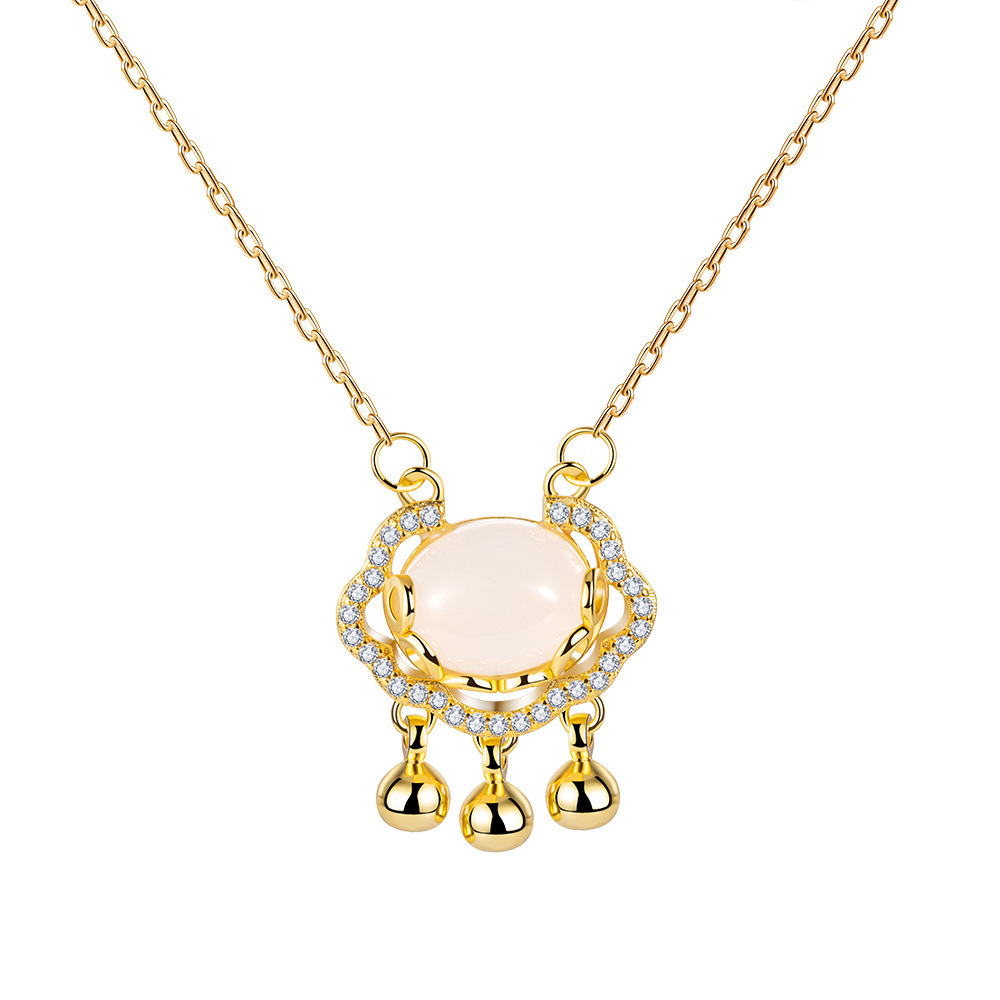 芸钢抖音同款祥云如意平安锁项链女镀金长命锁铃铛轻奢小众送闺蜜