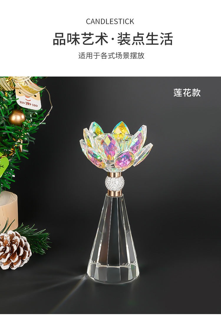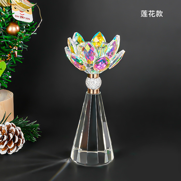 水晶莲花烛台定制亚马逊婚庆圣诞餐桌摆件高级感情人节晚餐装饰
