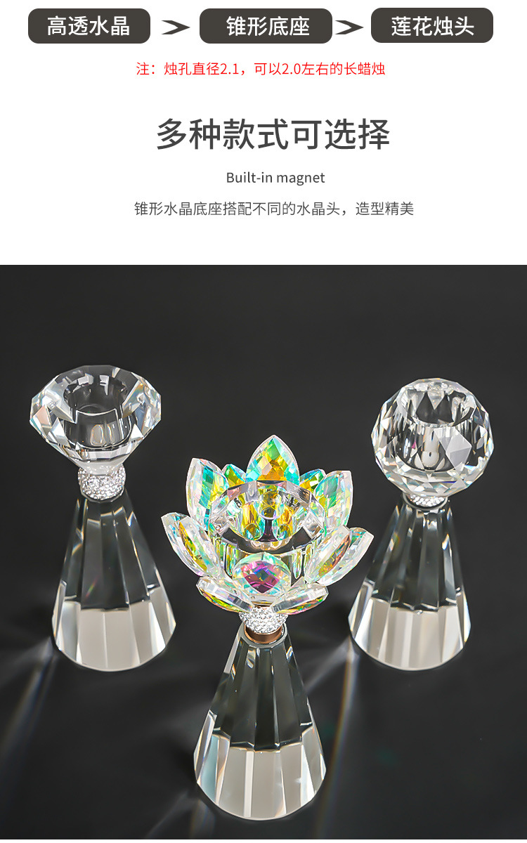 产品编号: HJ24015 货号: HJ24015 器皿种类: 烛台 材质: 水晶 包装: 纸盒装 工艺: 半手工半机械 是否专利货源: 否 是否进口: 否 尺寸: 莲花,钻石,圆球 是否跨境出口专供货源: 否 重量: 0.6 kg/个