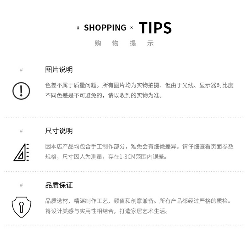 • 本商铺秉承重信用、守合同,保证产品质量,以多品种经营特色和薄利多销批零兼售的原则,以"顾客至上,锐意进取"的经营理念为广大客户提供优质的服务。
