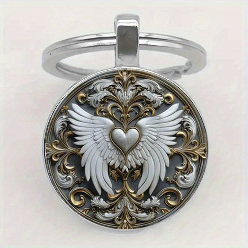 守护天使之翼钥匙链Y2K心形合金钥匙链包背包挂珠宝礼物