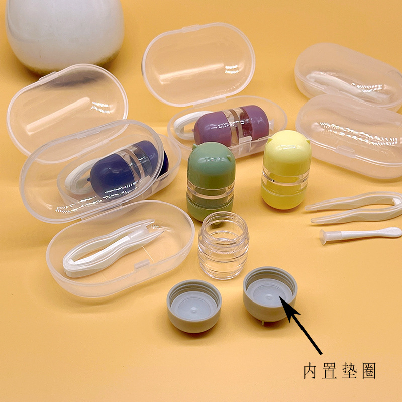 2.双联盒注入一层保存液后、装存镜片(注意镜片放入盒内,请勿放在双联盒边缘)拧紧盒盖.