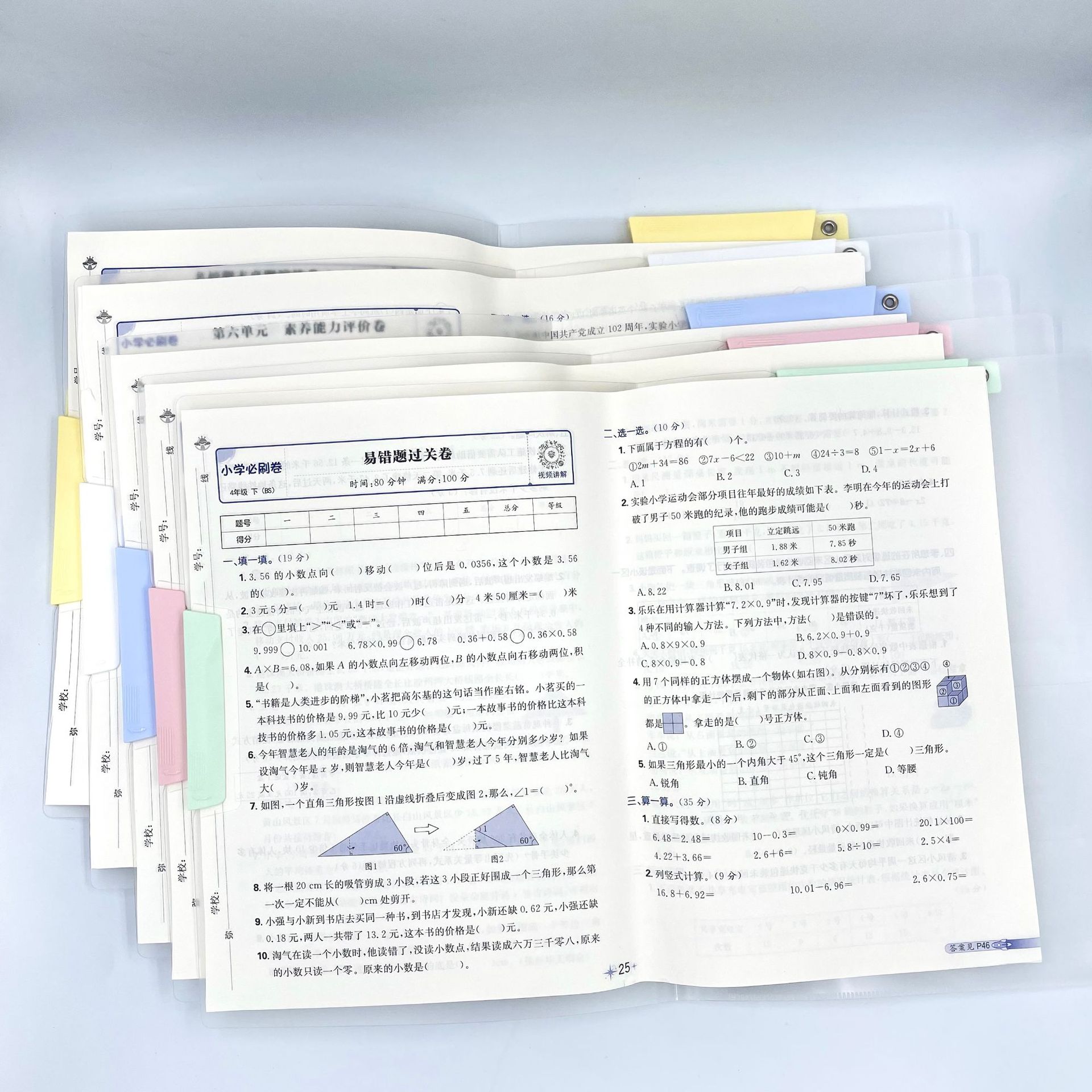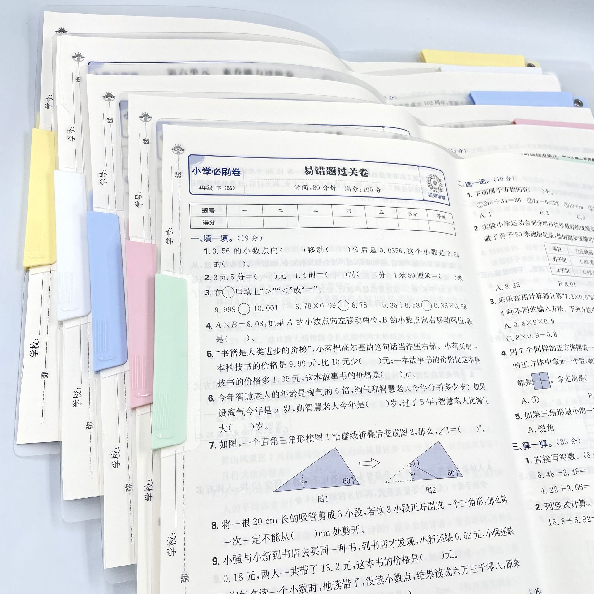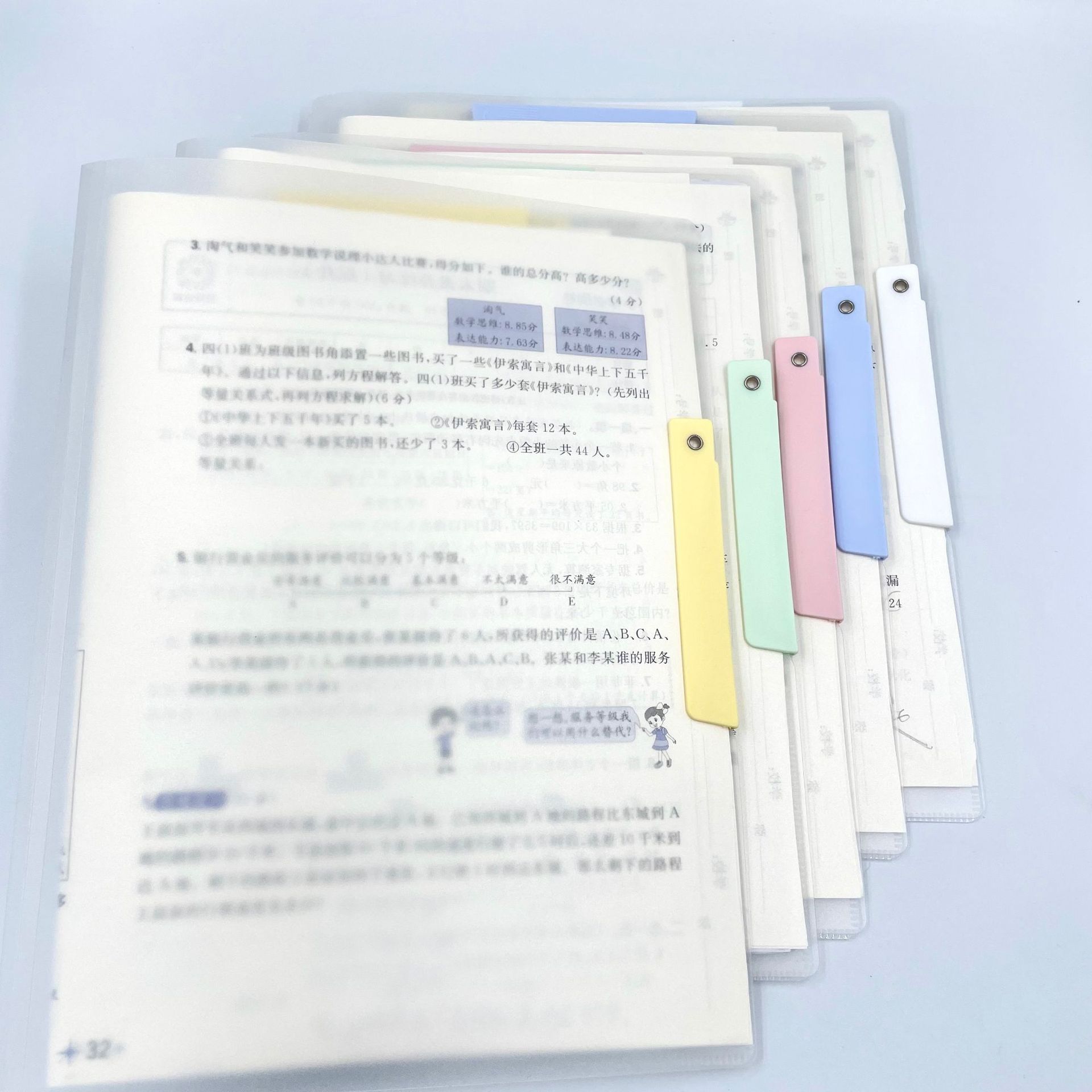 既可夹A3又可夹A4试卷收纳、资料分类一体夹,直接翻阅批改,5色可选,方便分类、5色旋转夹,装订简易。