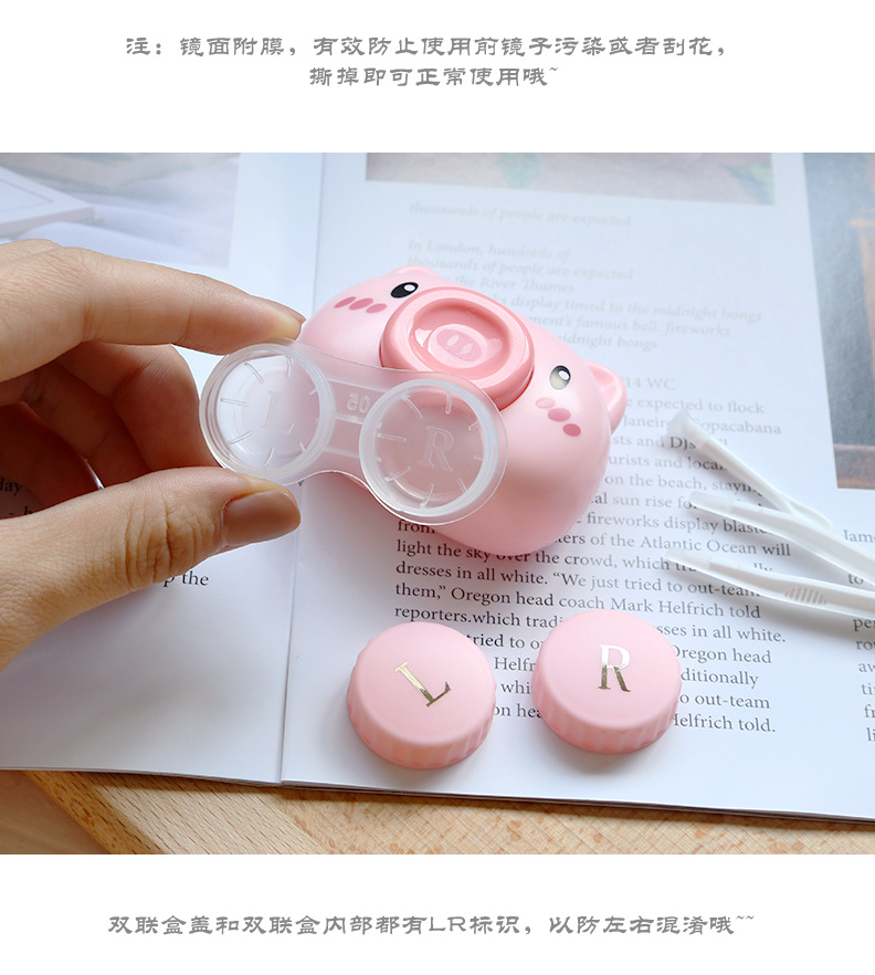 ⒉双联盒注入一层保存液后、装存镜片(注意镜片放入盒内,请勿放在双联盒边缘)拧紧盒盖.