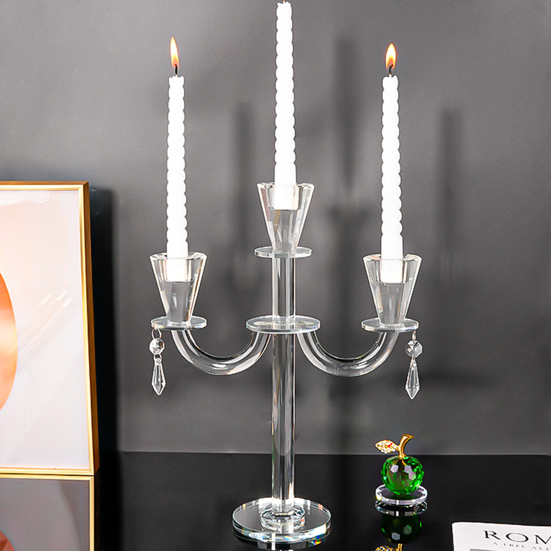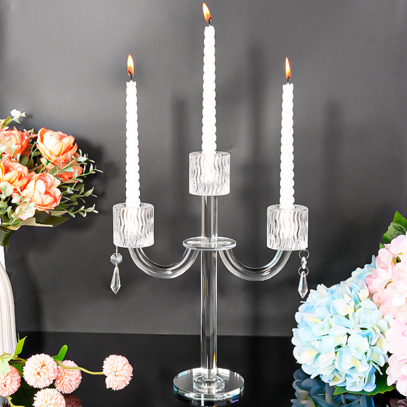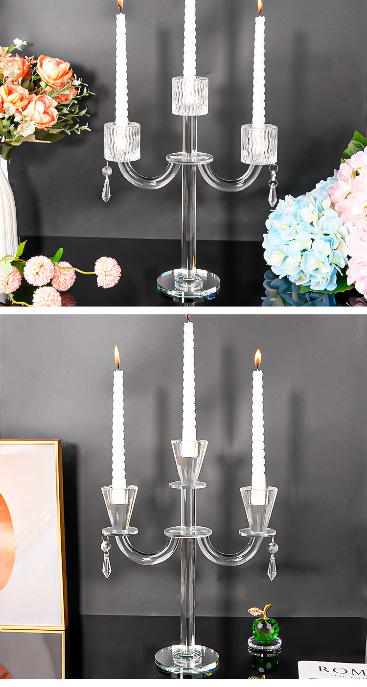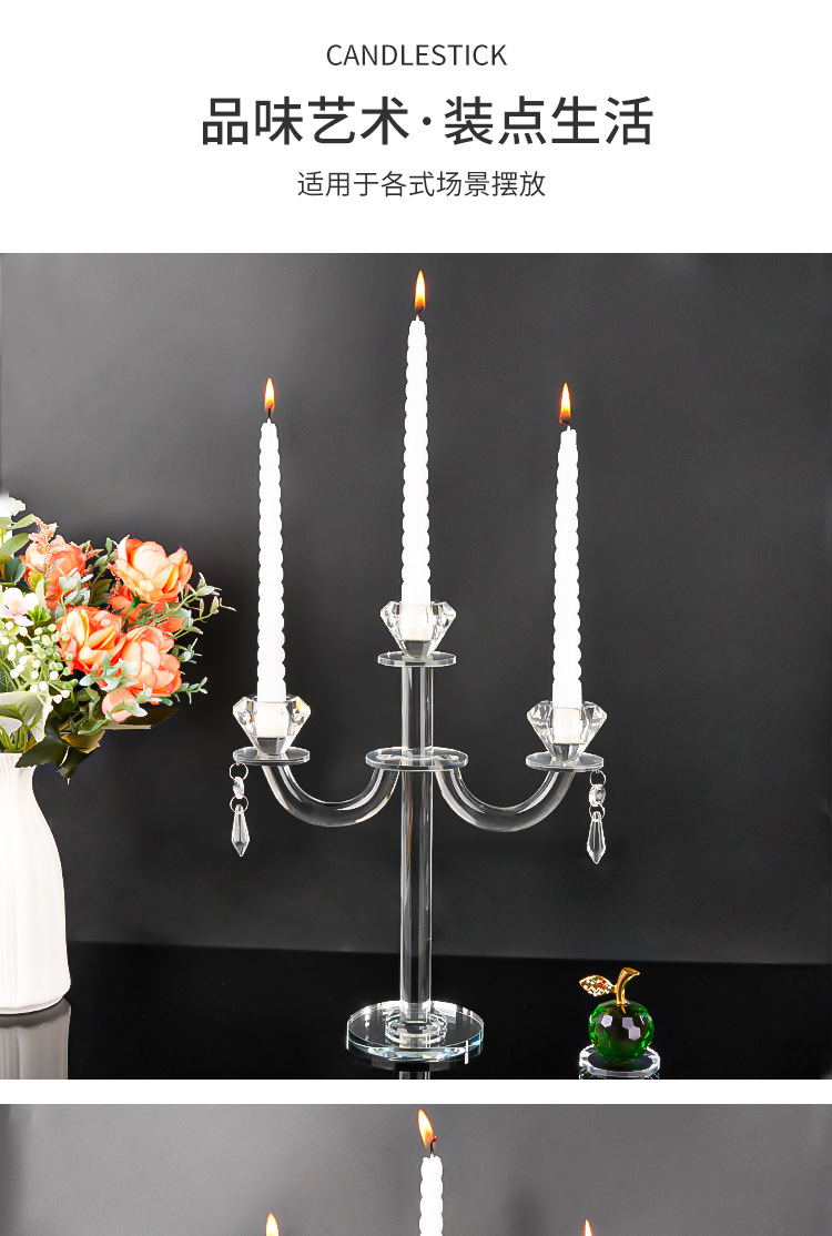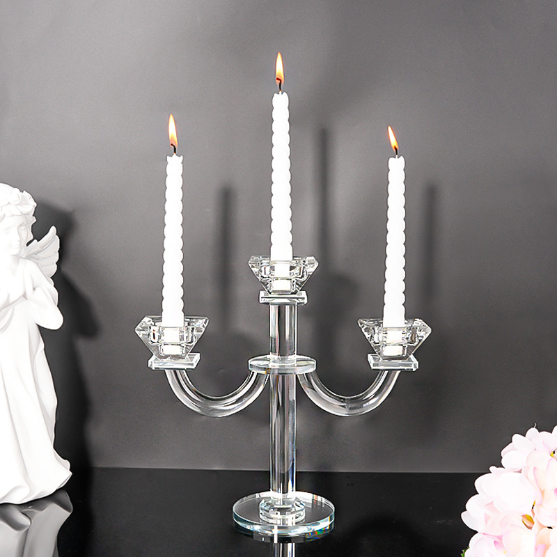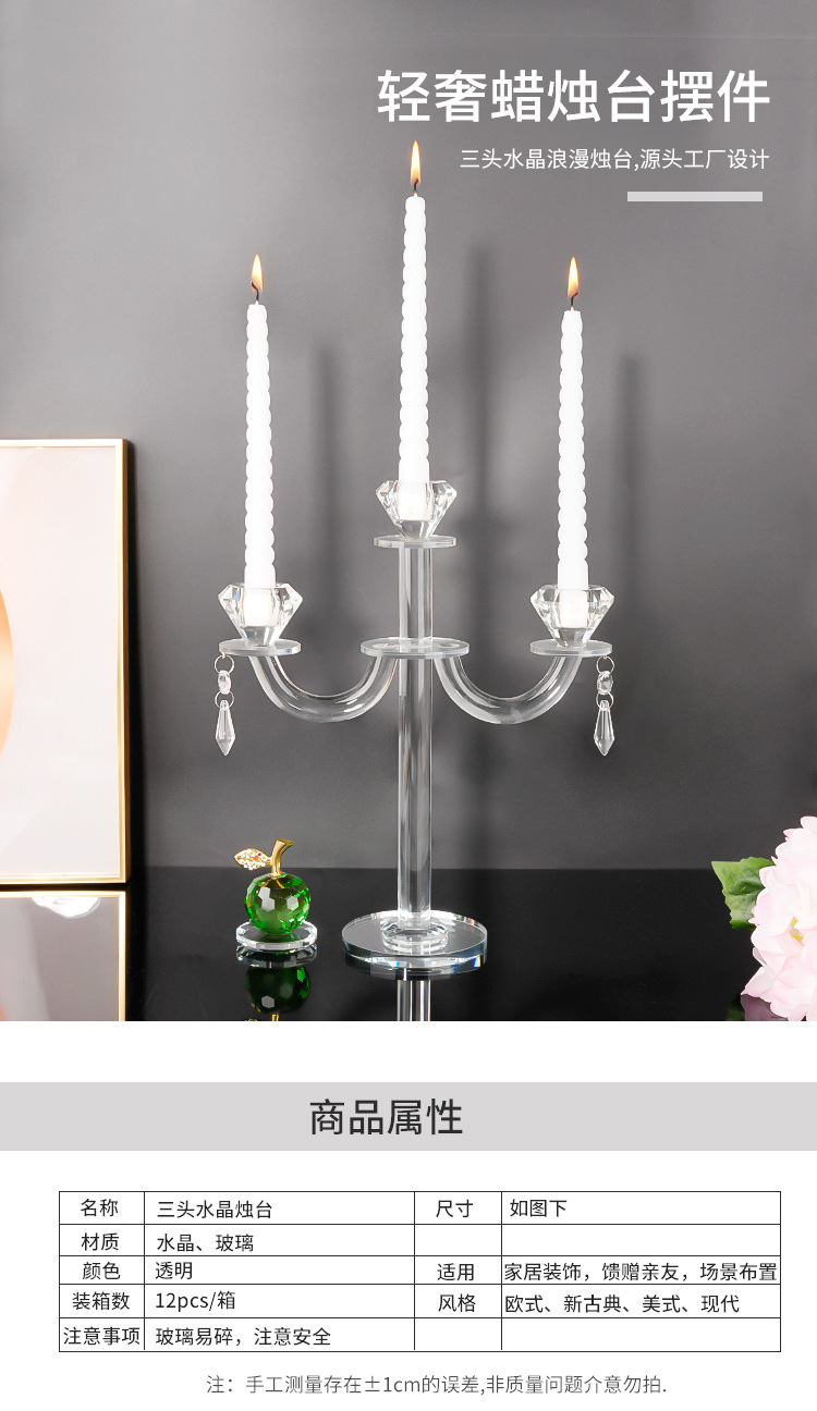 北欧复古水晶三头蜡烛台香薰蜡烛家用摆件浪漫餐桌烛光晚餐道具