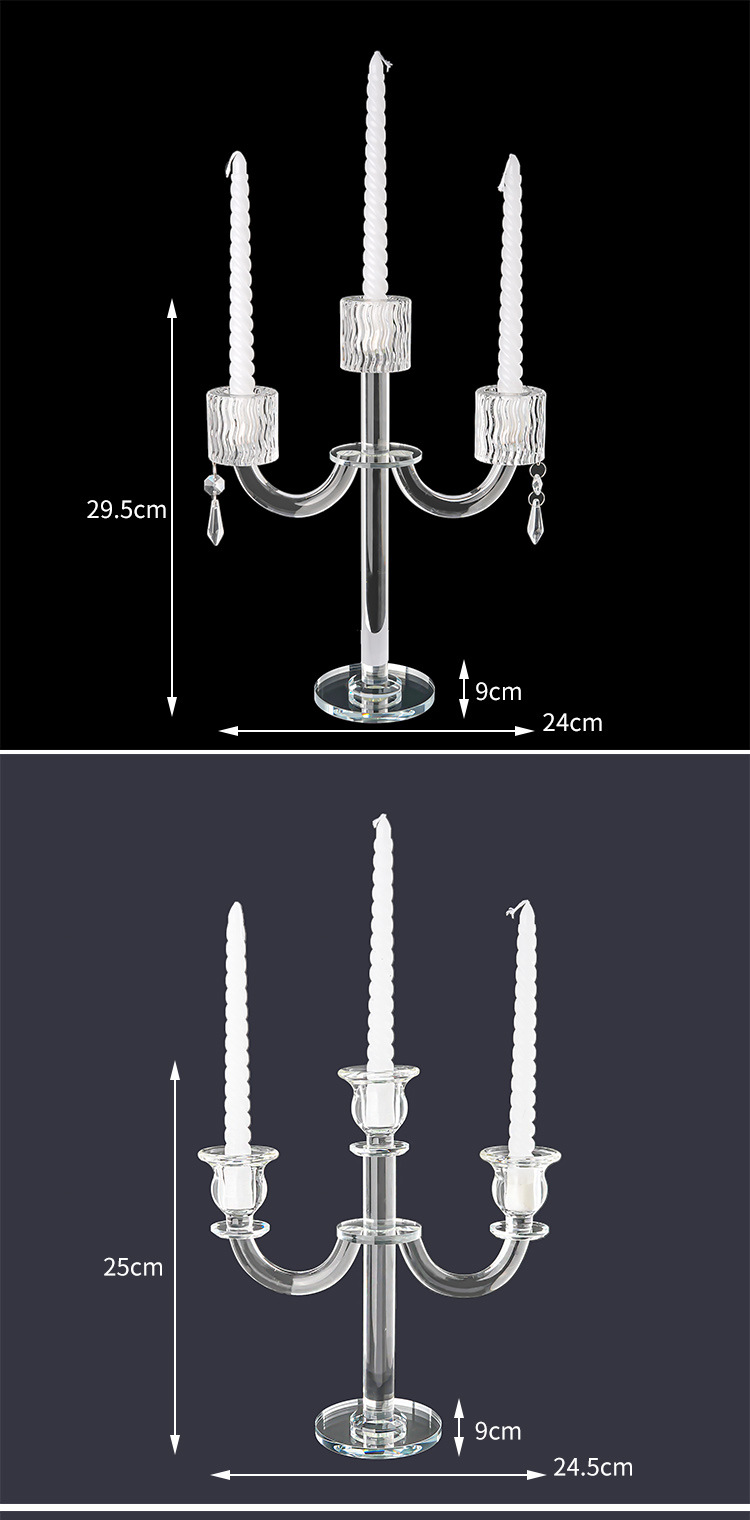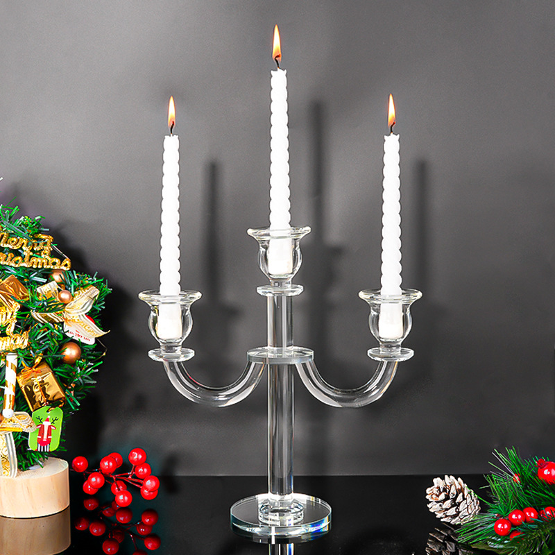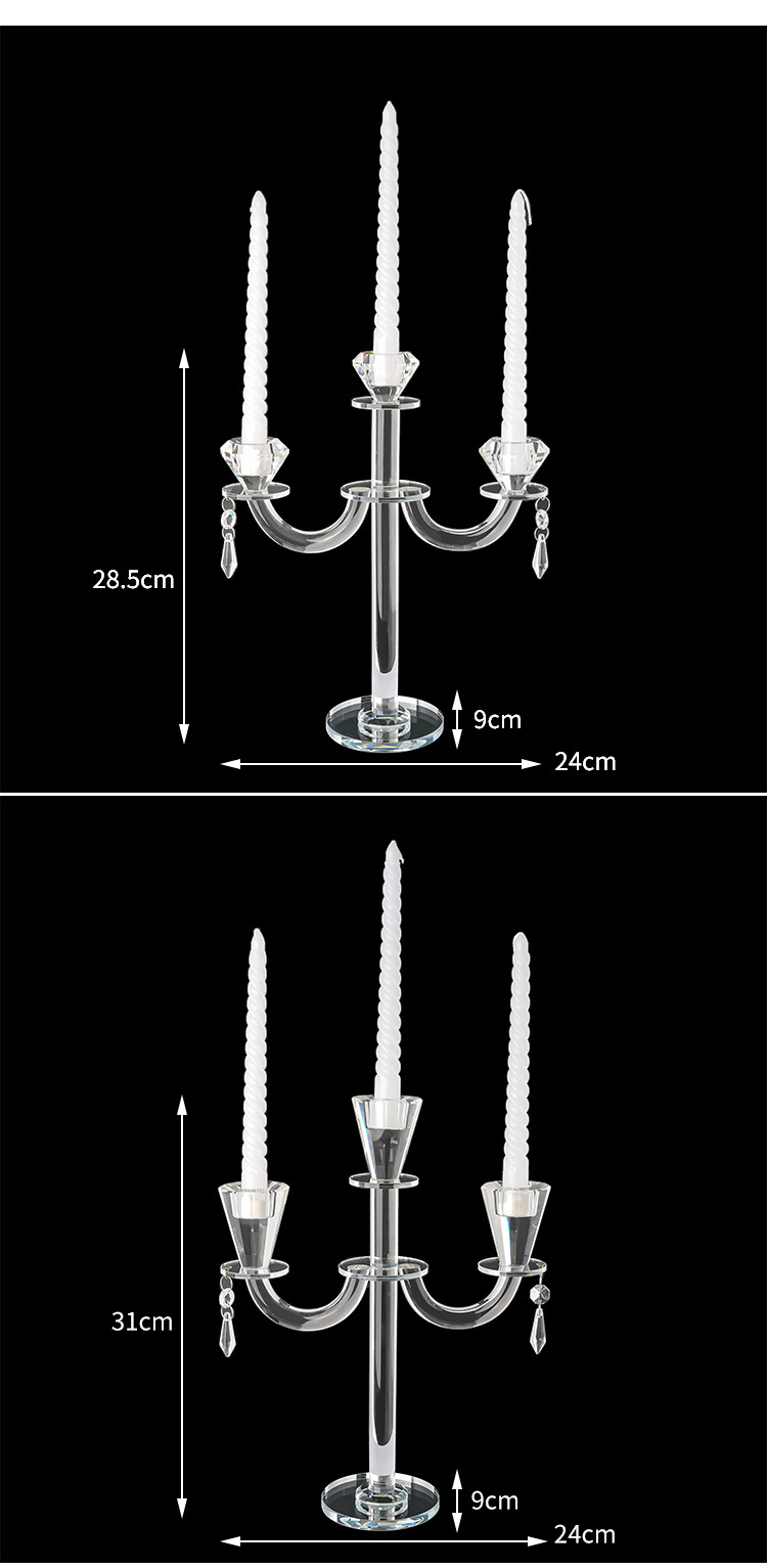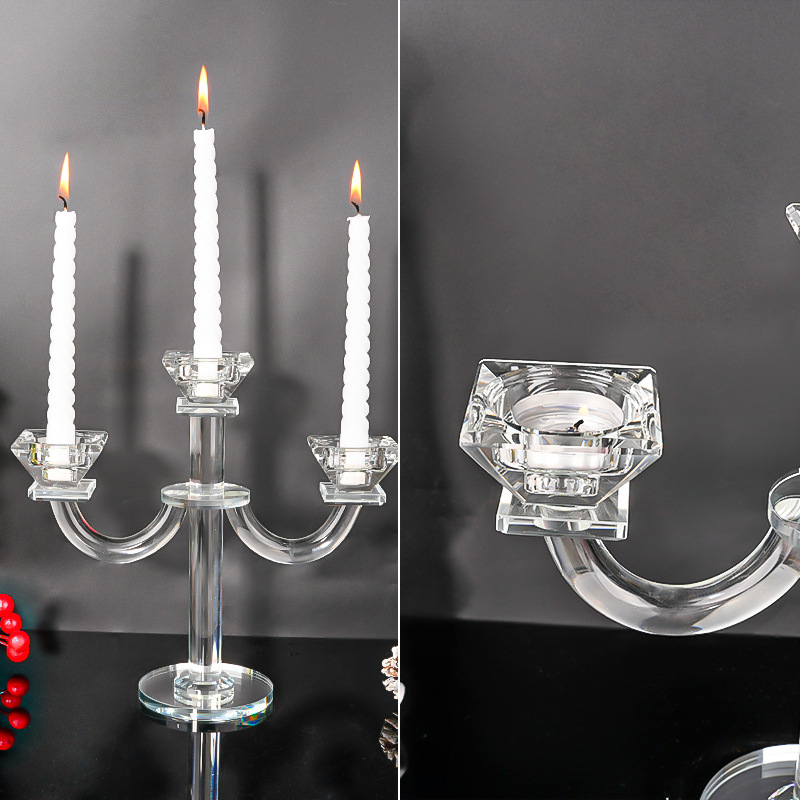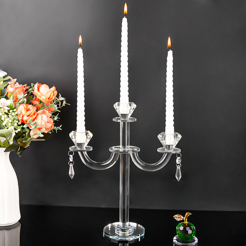 北欧复古水晶三头蜡烛台香薰蜡烛家用摆件浪漫餐桌烛光晚餐道具