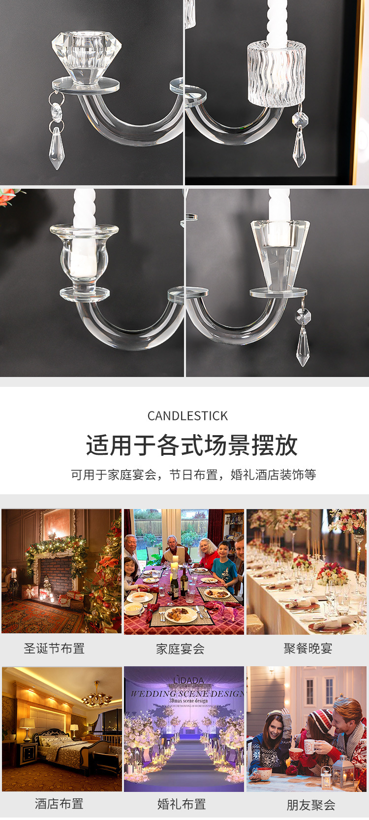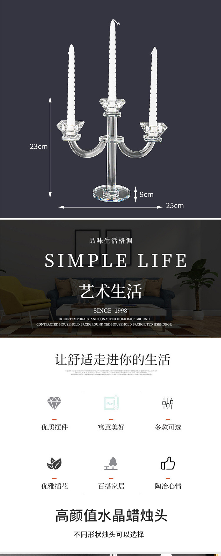 北欧复古水晶三头蜡烛台香薰蜡烛家用摆件浪漫餐桌烛光晚餐道具 投诉
