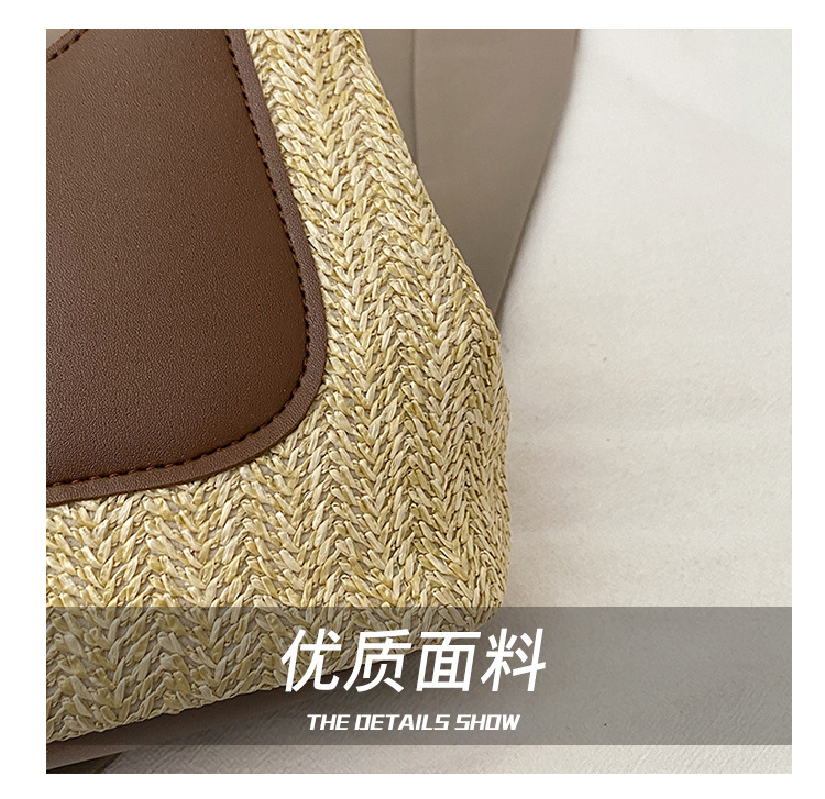 2025夏季复古撞色拼接草编包大容量手工编织包简约时尚单肩手提包 投诉
