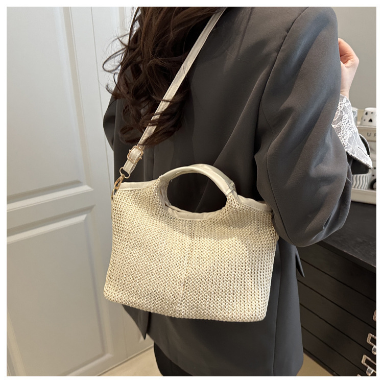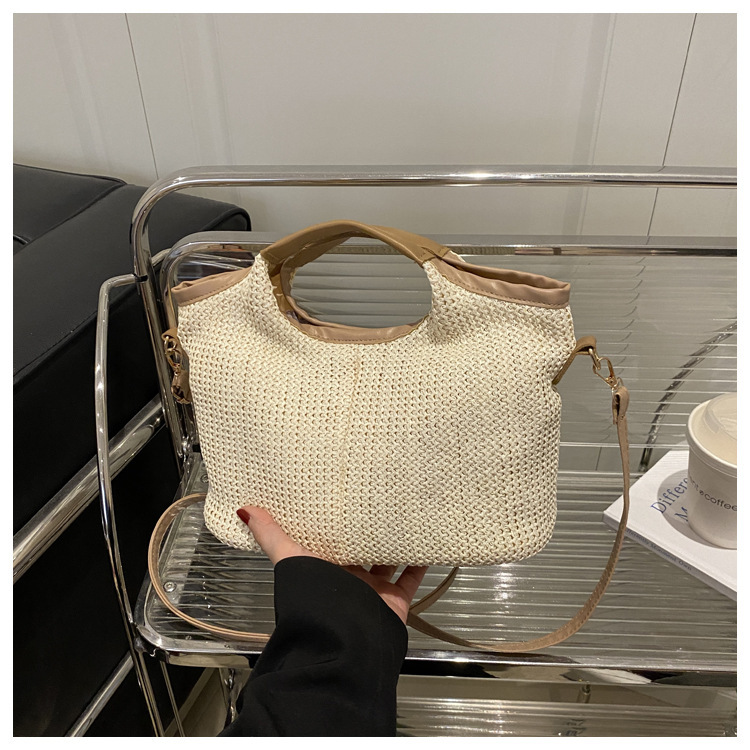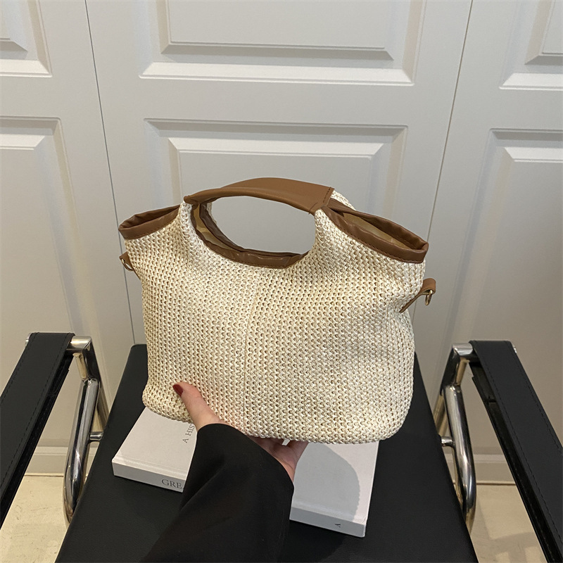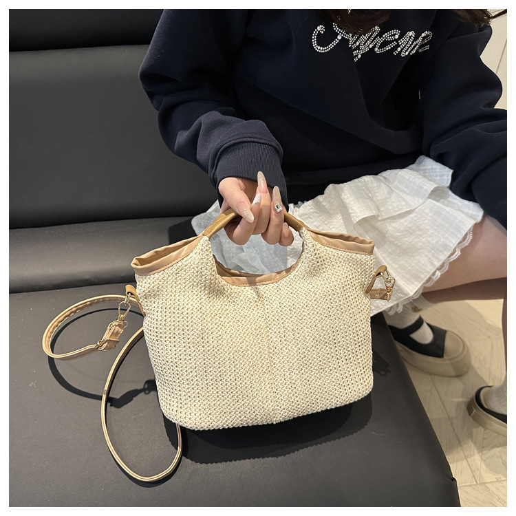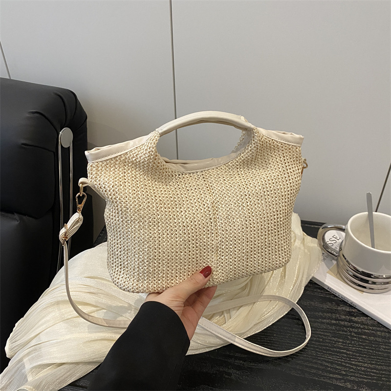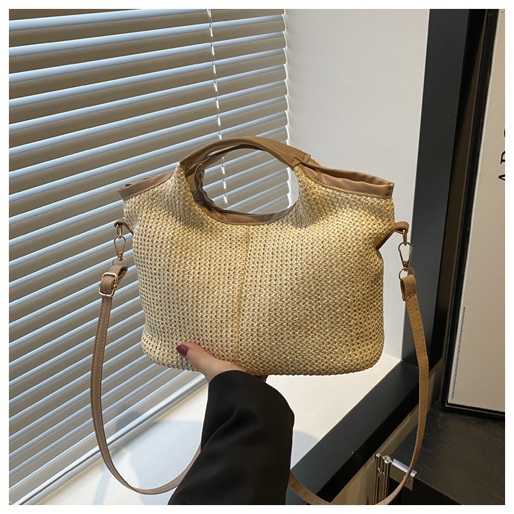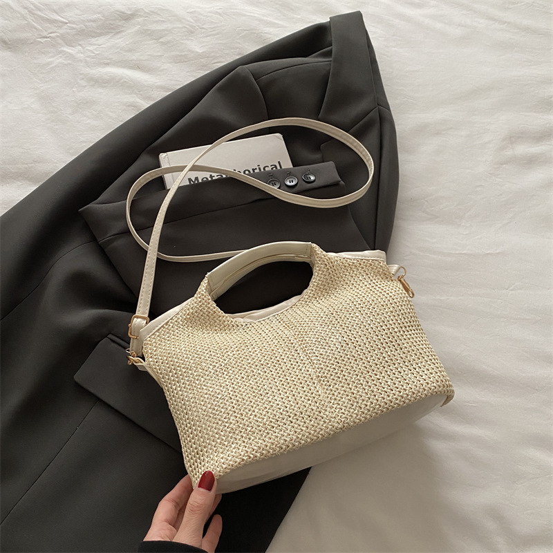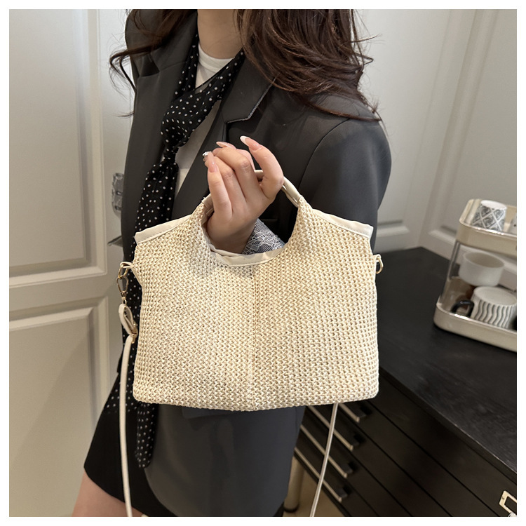 韩版编织包包女包出行新款托特腋下包草编包女丝巾包大容量单肩包