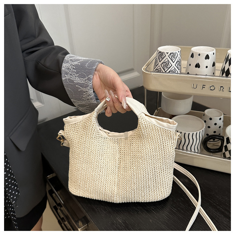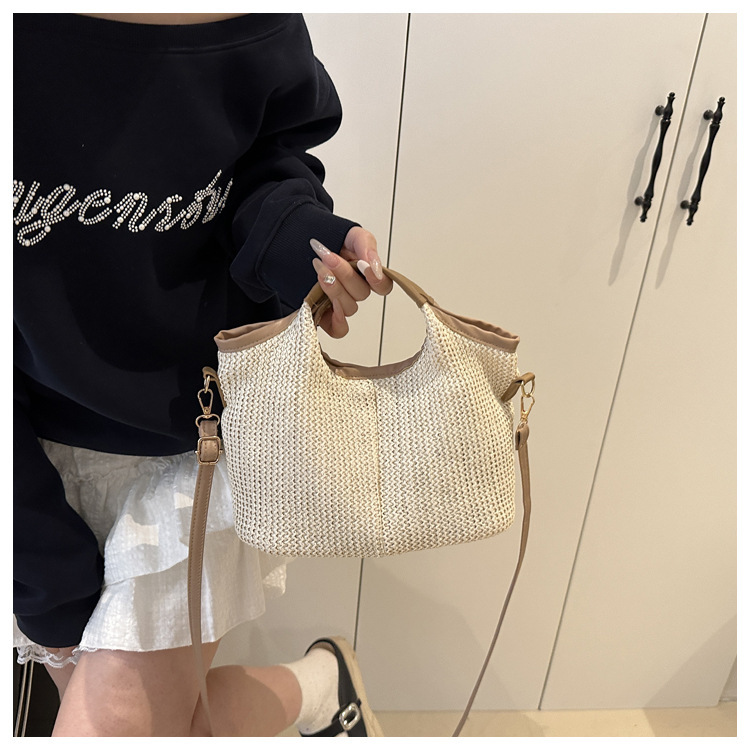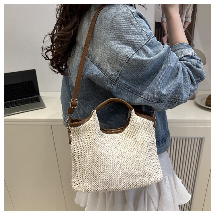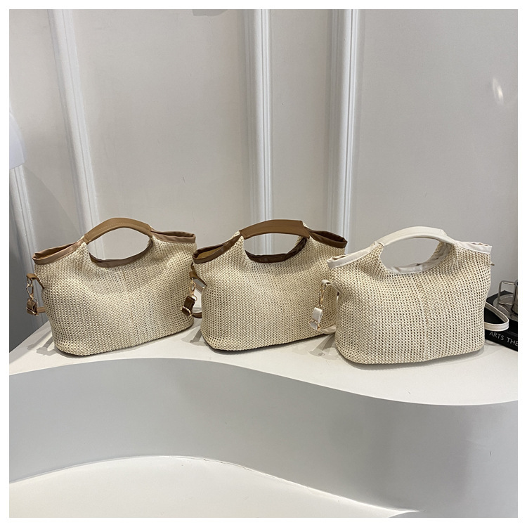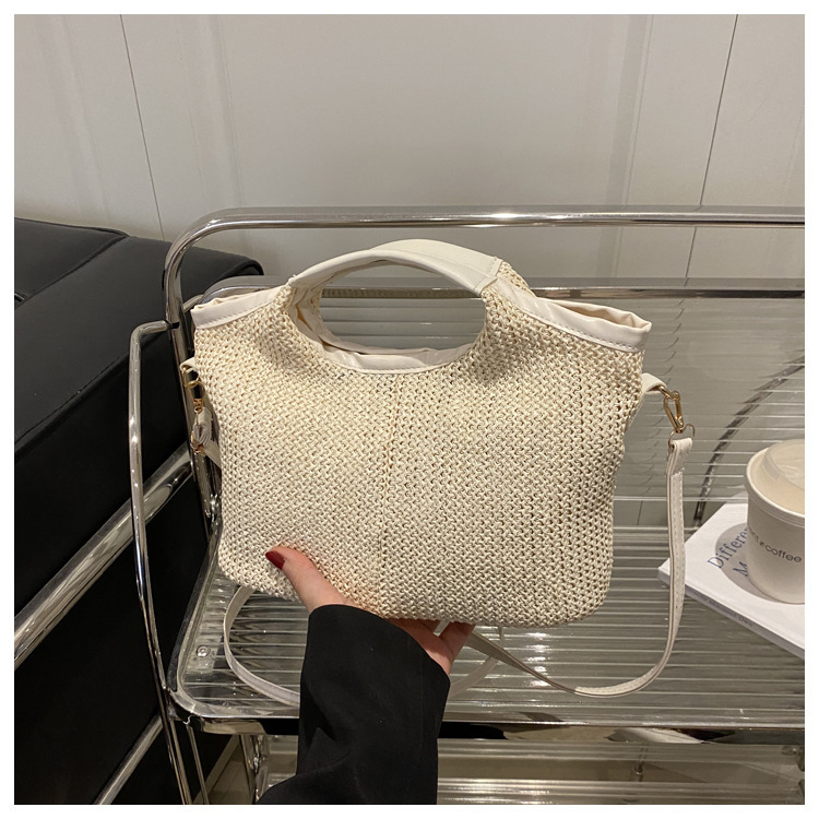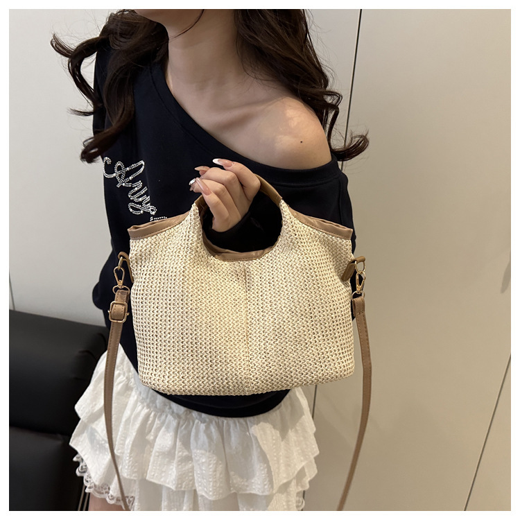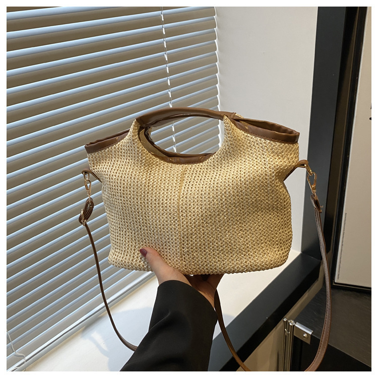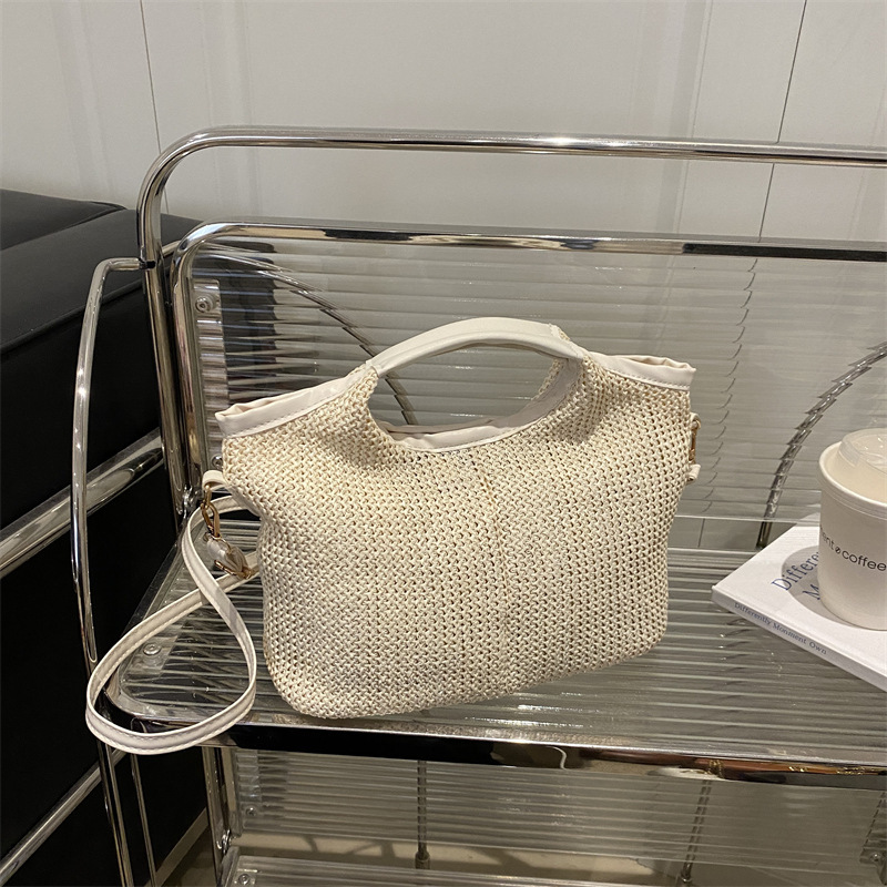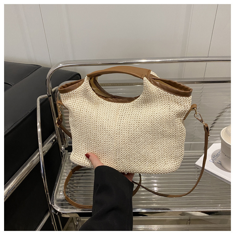 韩版编织包包女包出行新款托特腋下包草编包女丝巾包大容量单肩包