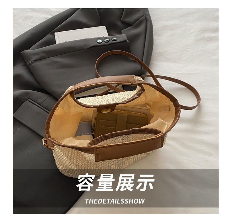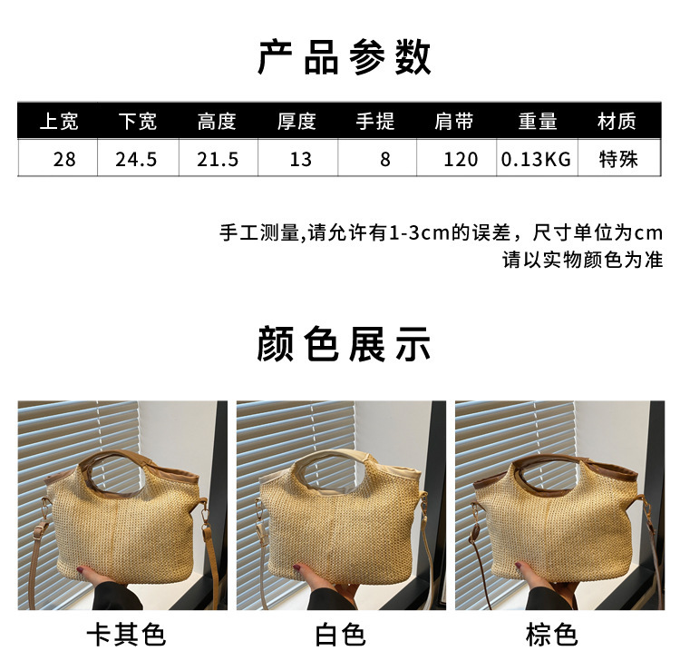 韩版编织包包女包出行新款托特腋下包草编包女丝巾包大容量单肩包 投诉