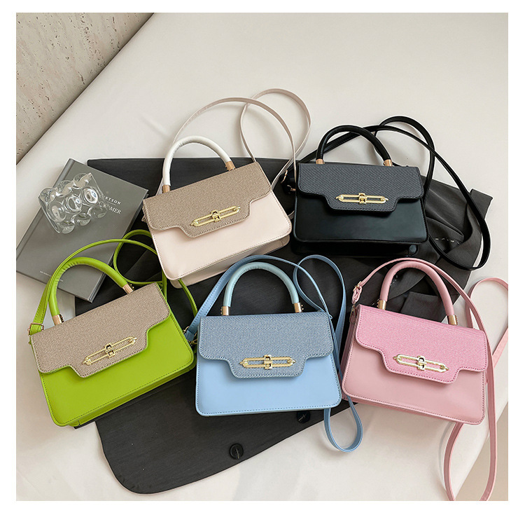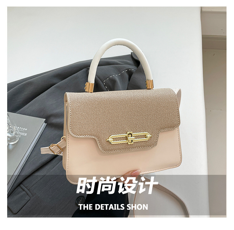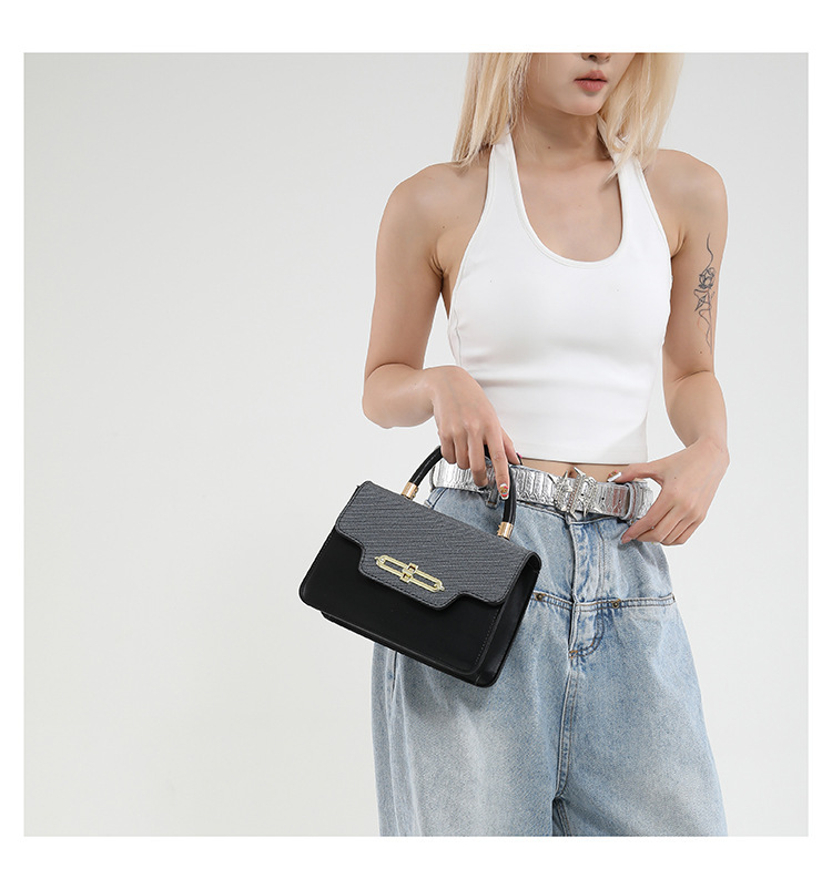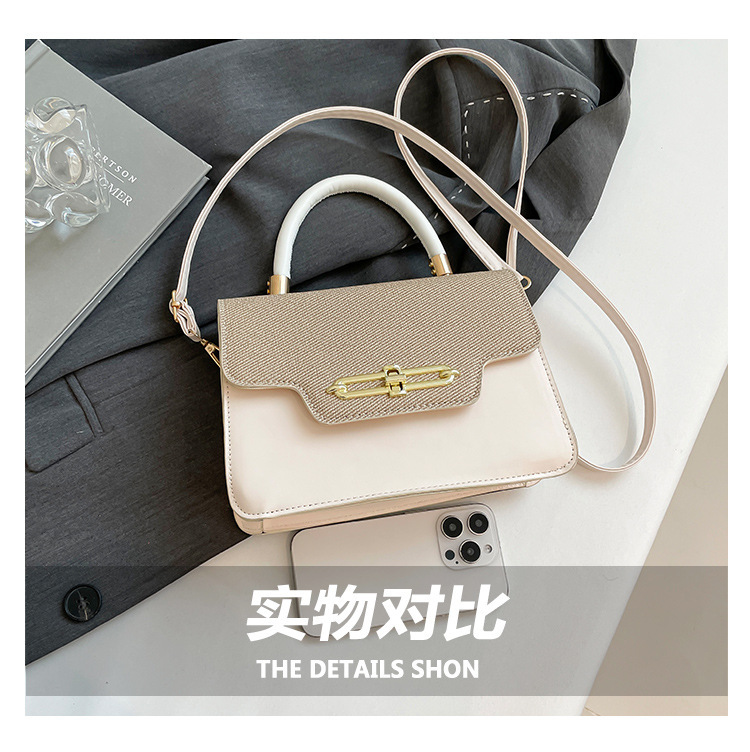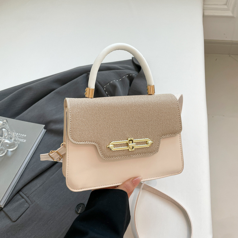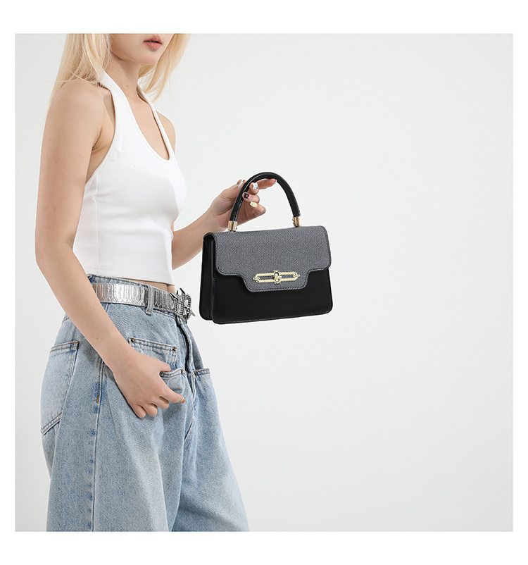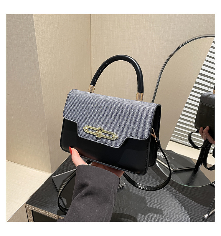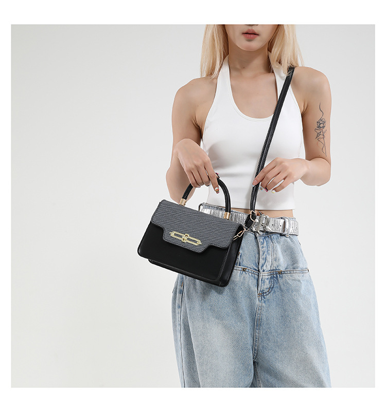 大容量复古2025春新款锁扣时尚潮流行拼接女士潮流斜挎单肩小方包