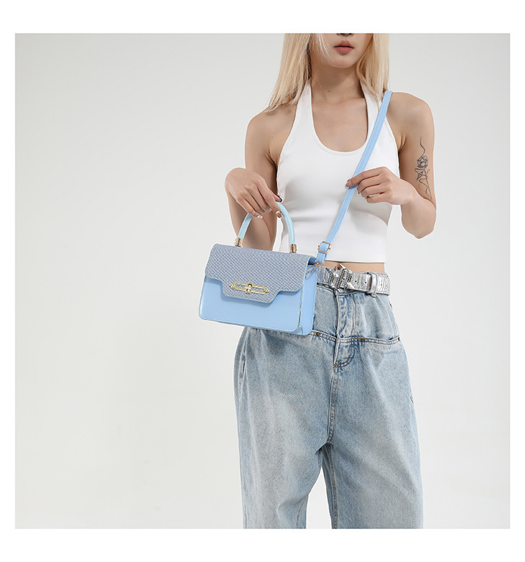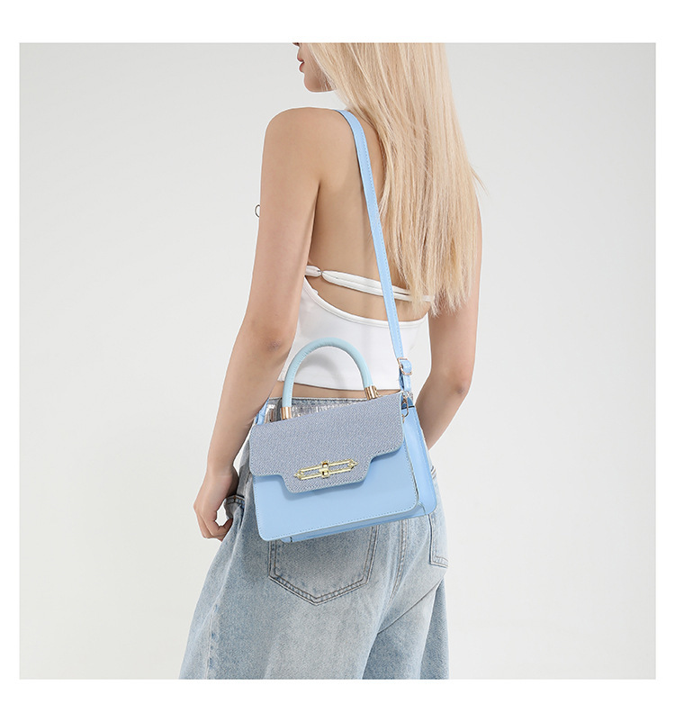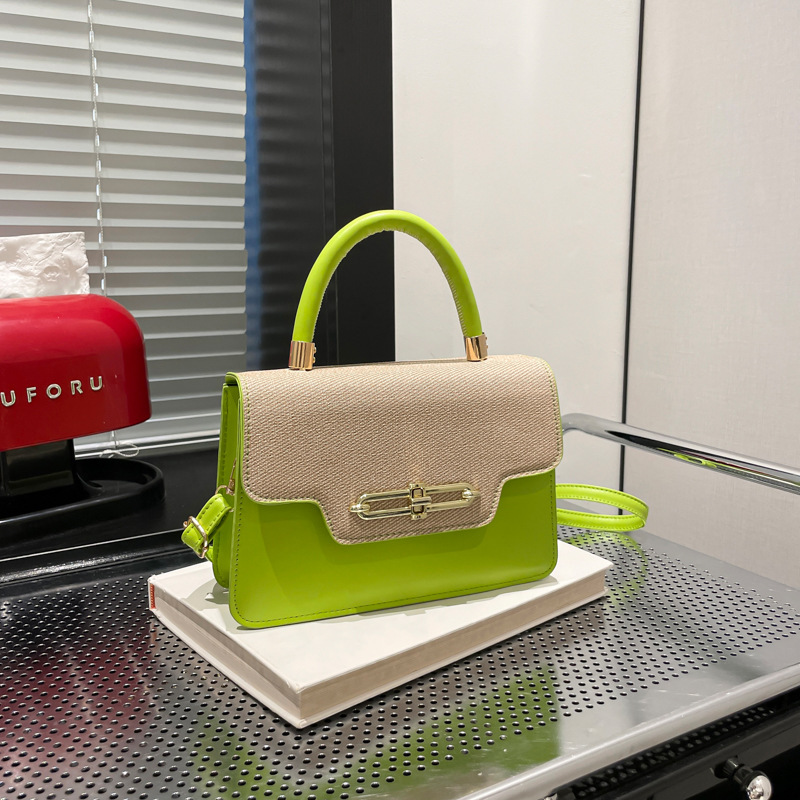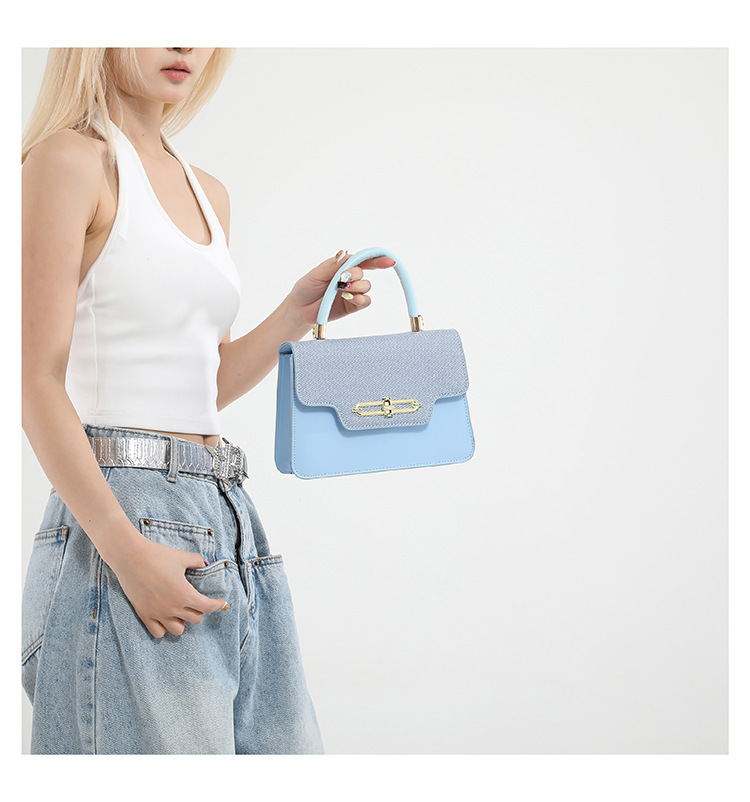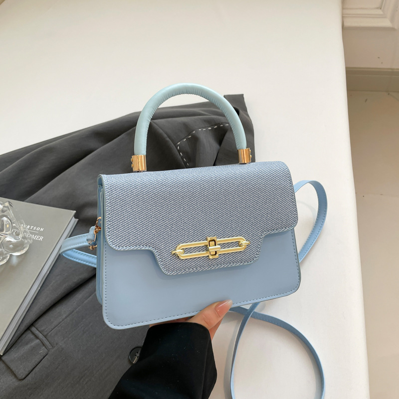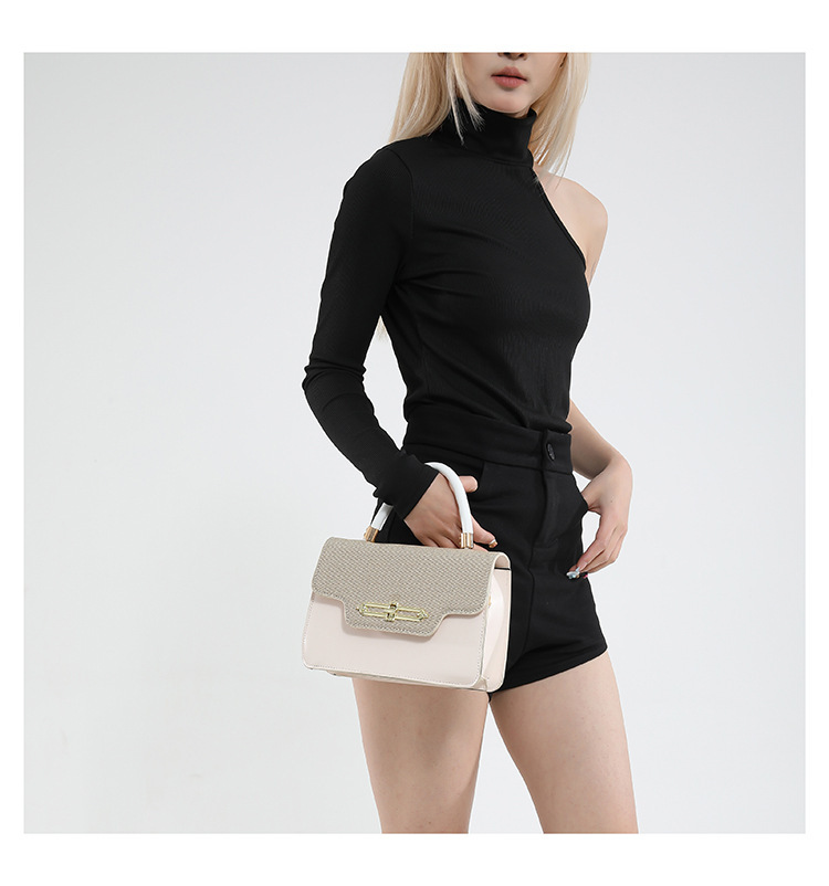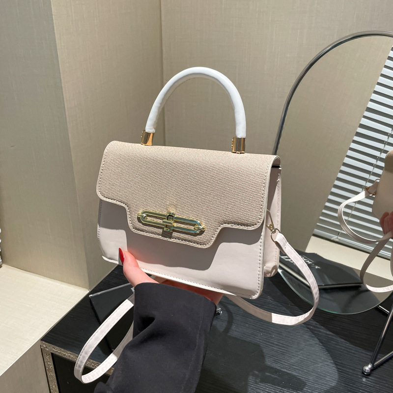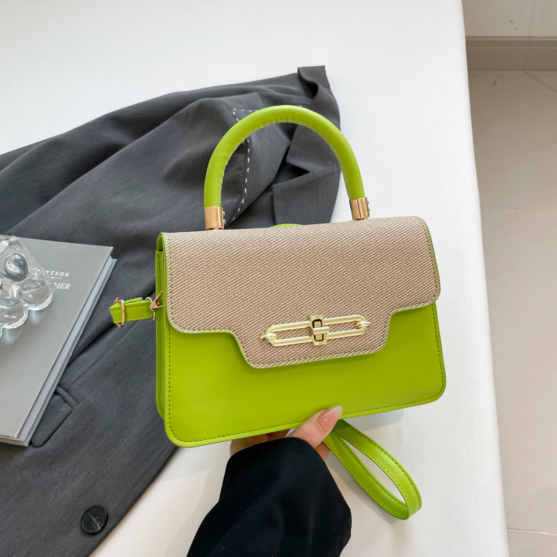 大容量复古2025春新款锁扣时尚潮流行拼接女士潮流斜挎单肩小方包