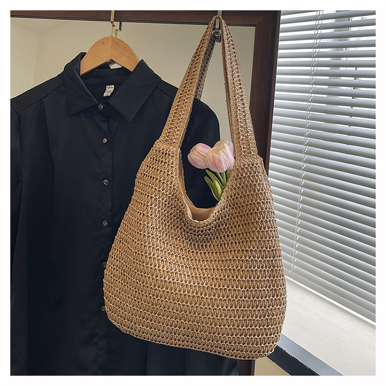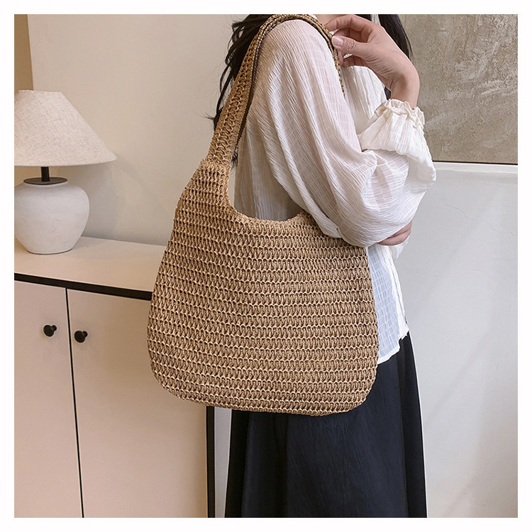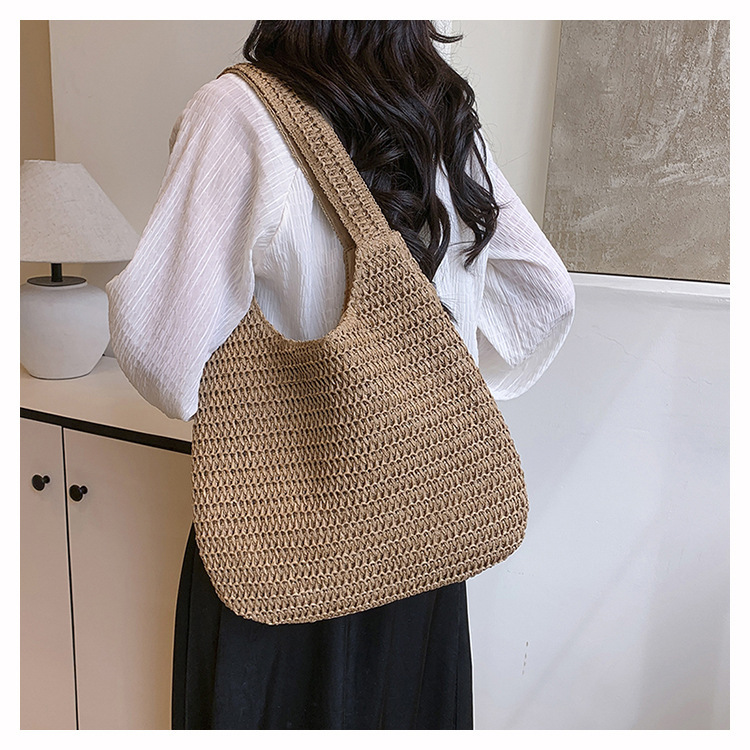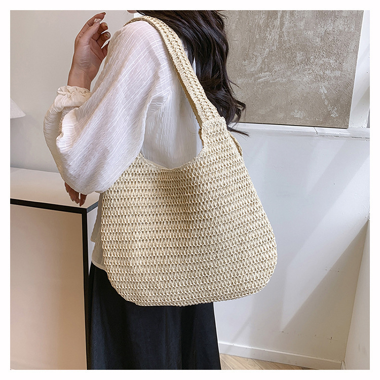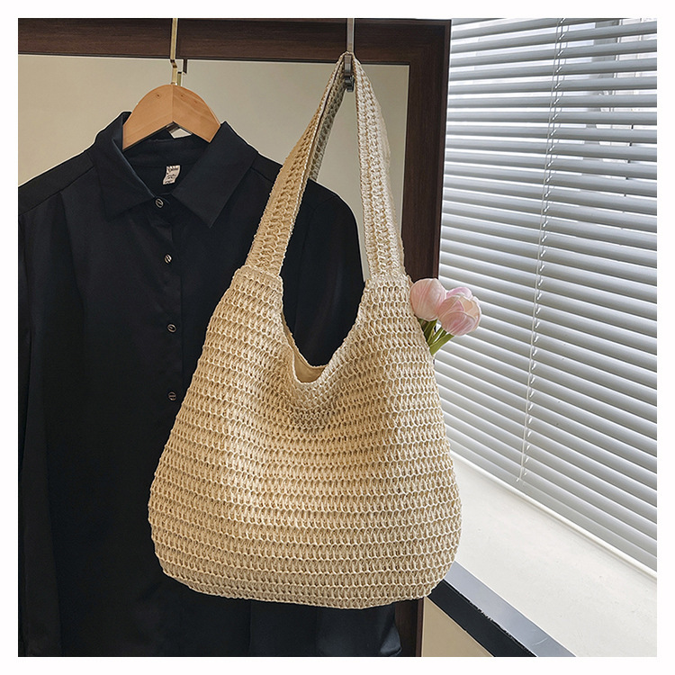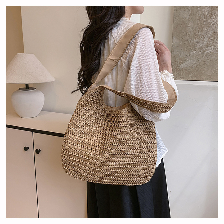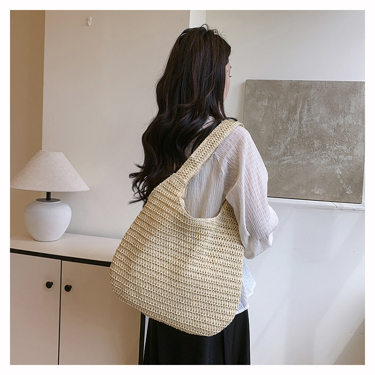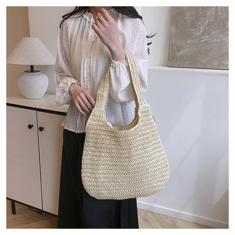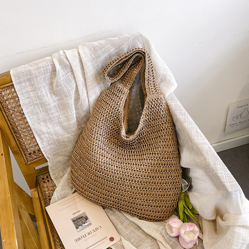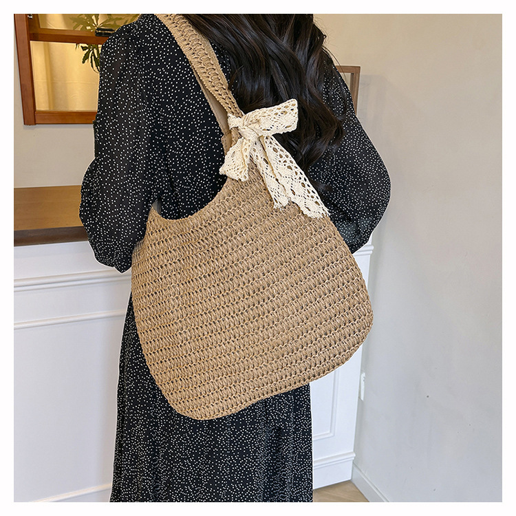 夏季时尚流行沙滩单肩包编织手提托特包草编菜篮子丝巾蝴蝶结女包