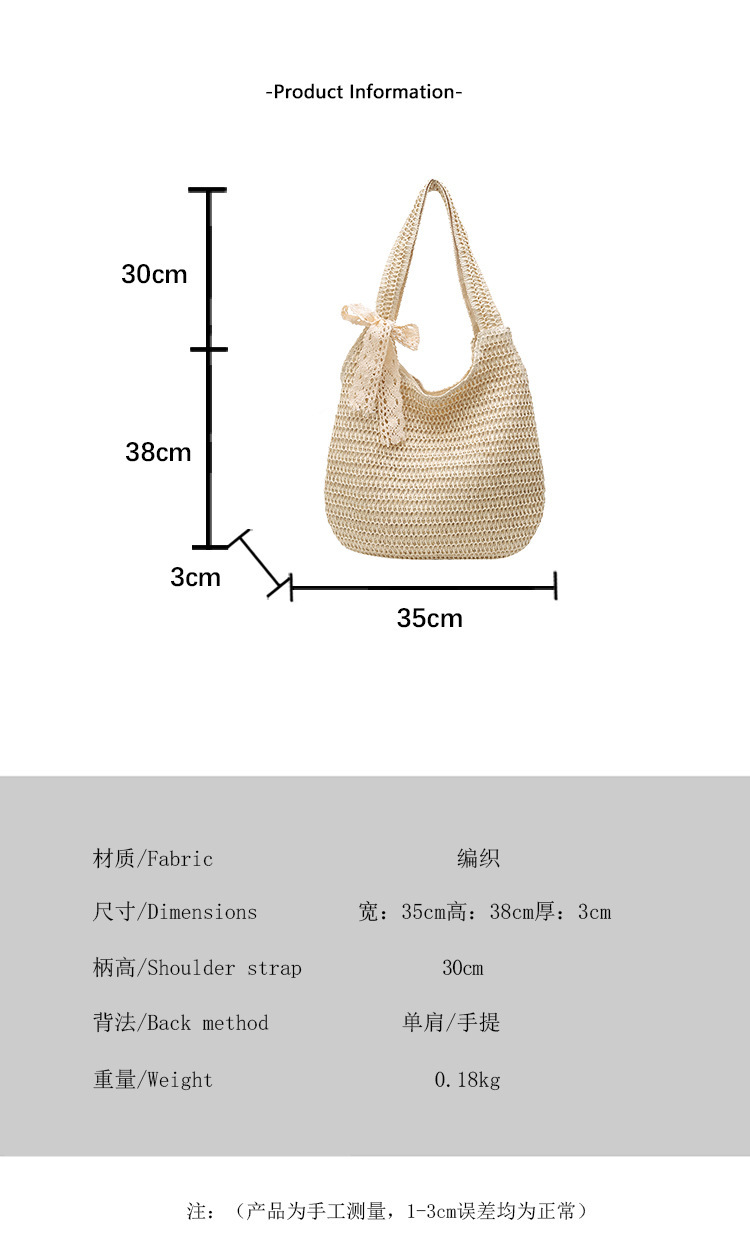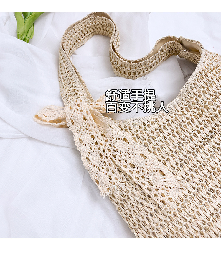 夏季时尚流行沙滩单肩包编织手提托特包草编菜篮子丝巾蝴蝶结女包 投诉