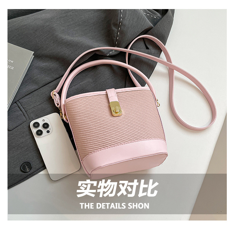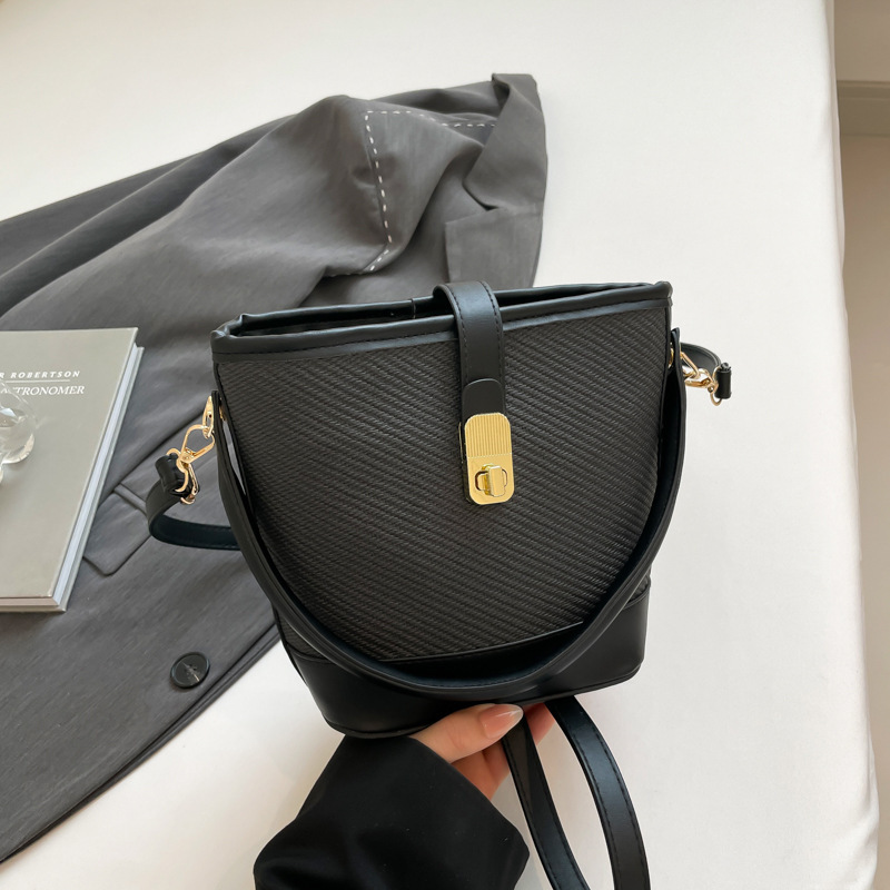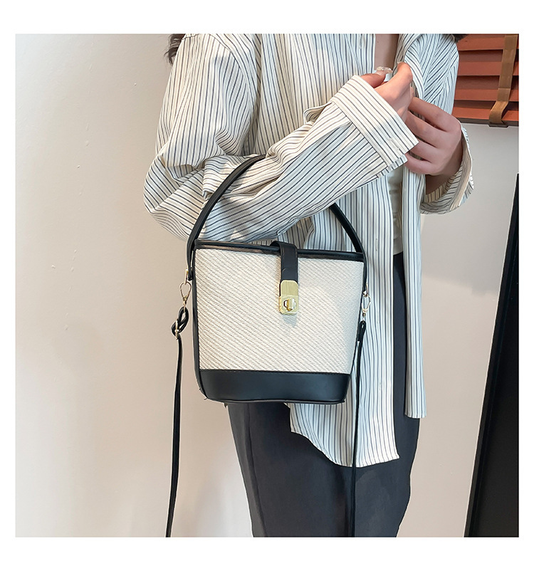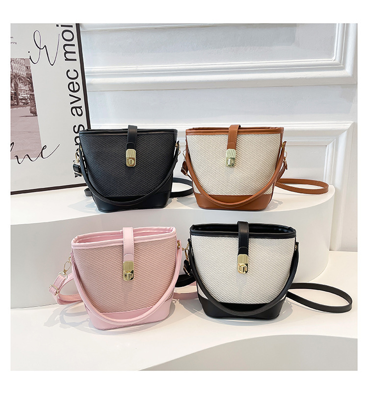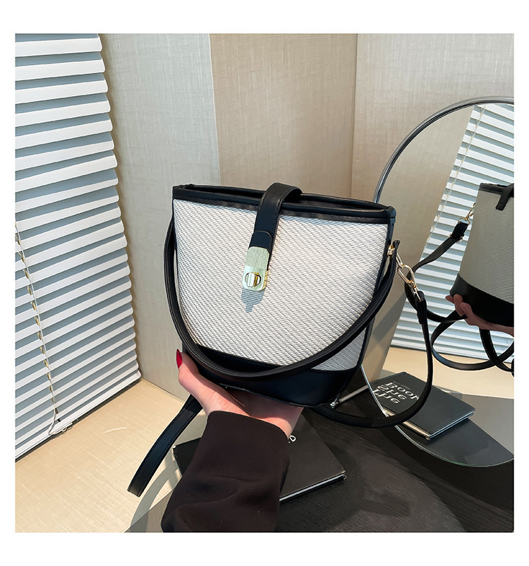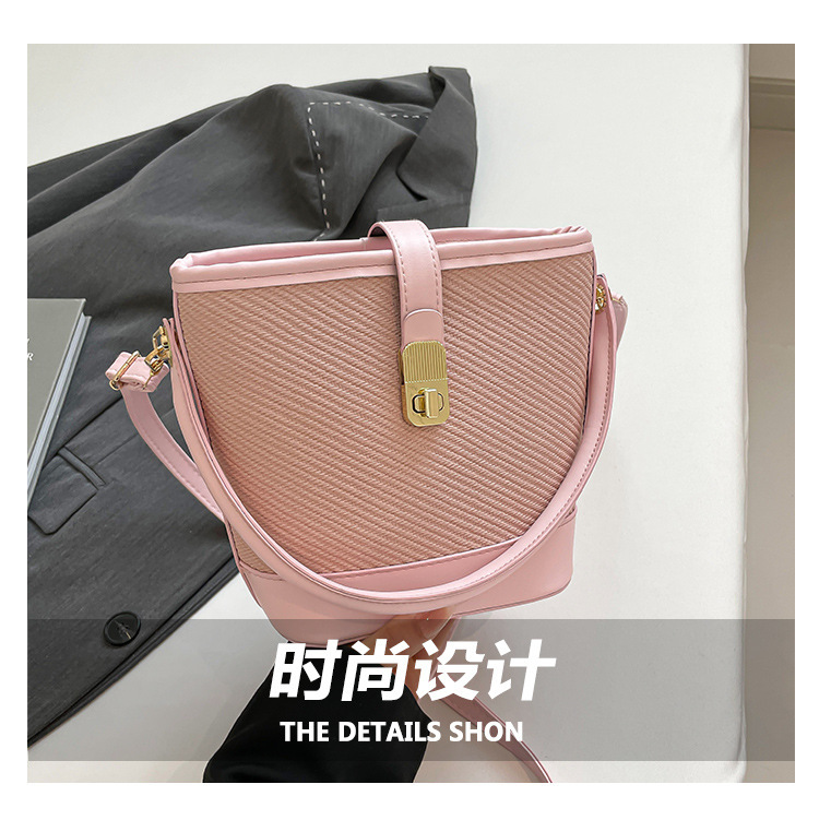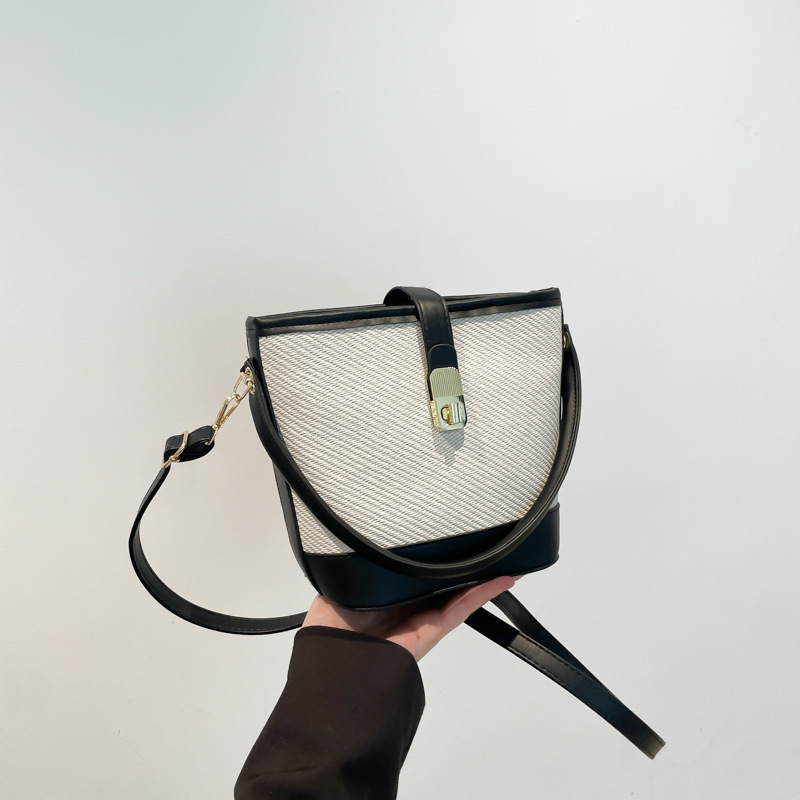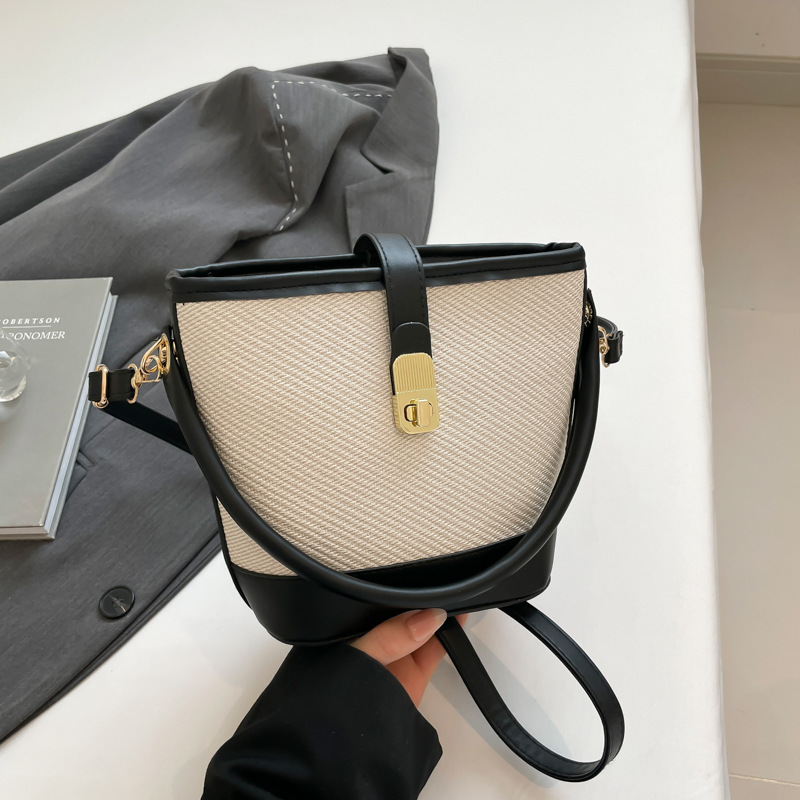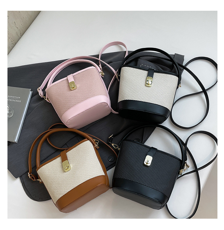 韩版简约包包女2025新款时尚撞色手拎水桶包通勤休闲斜挎女包网红
