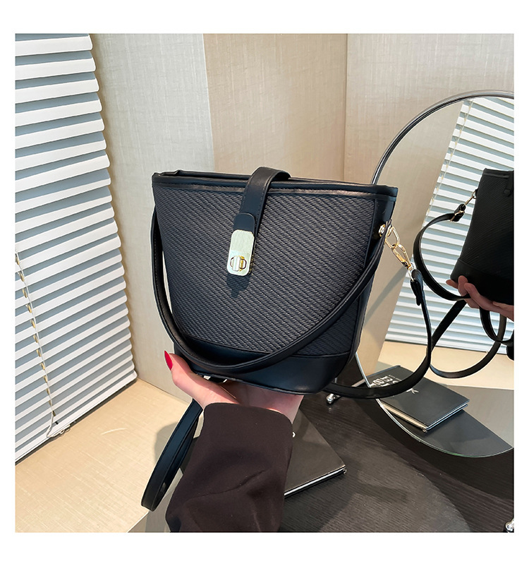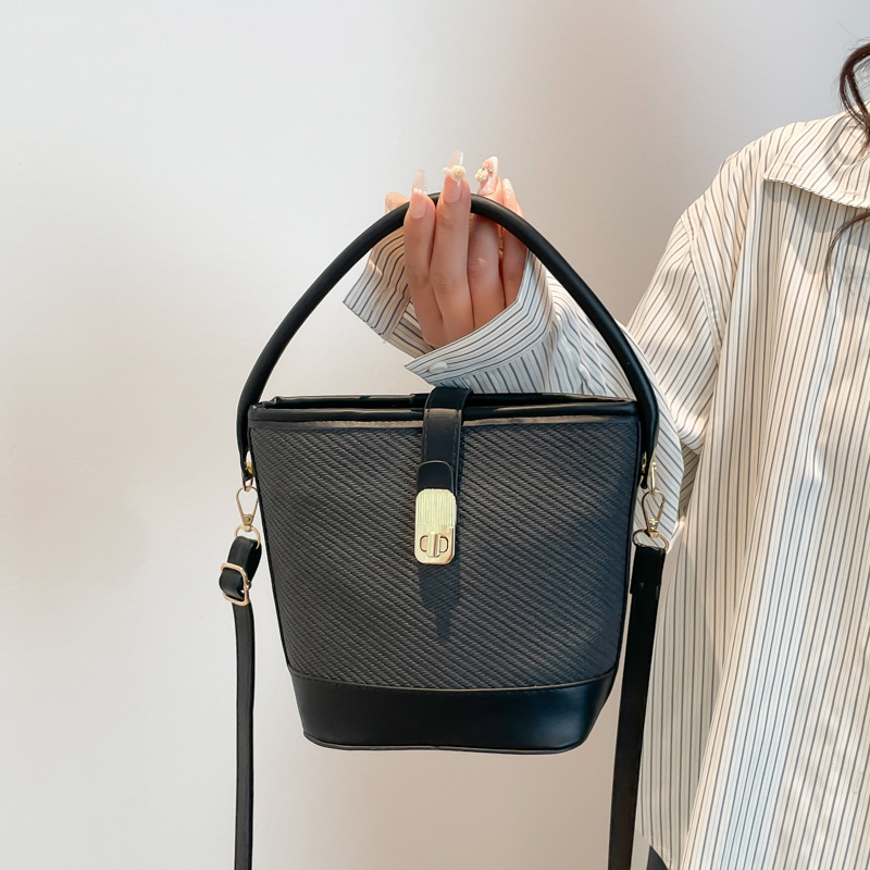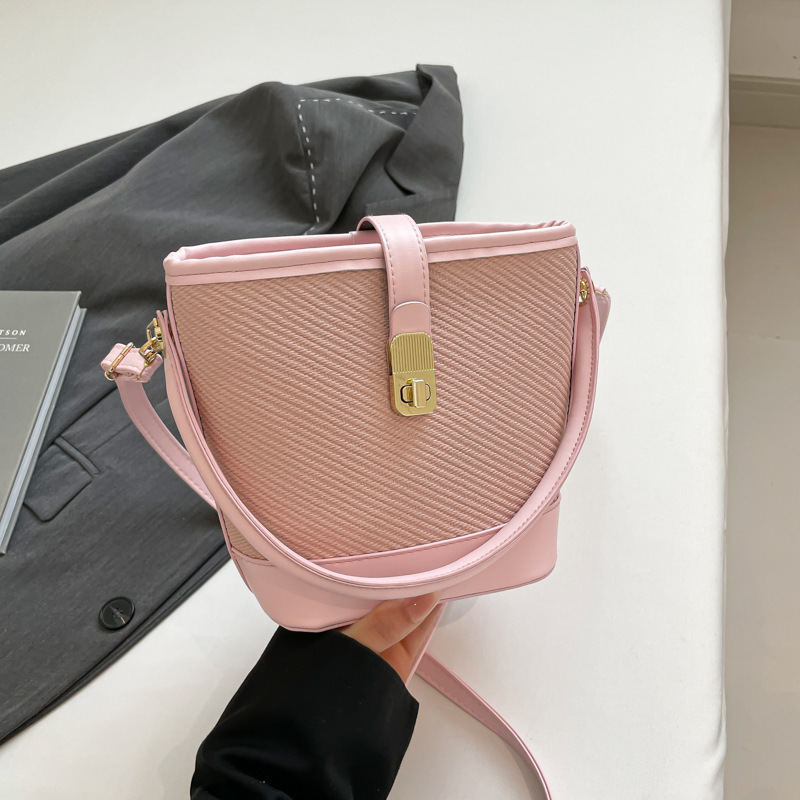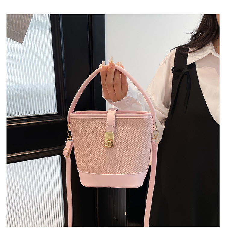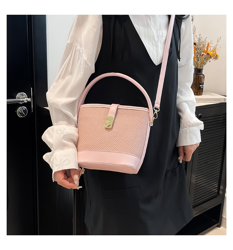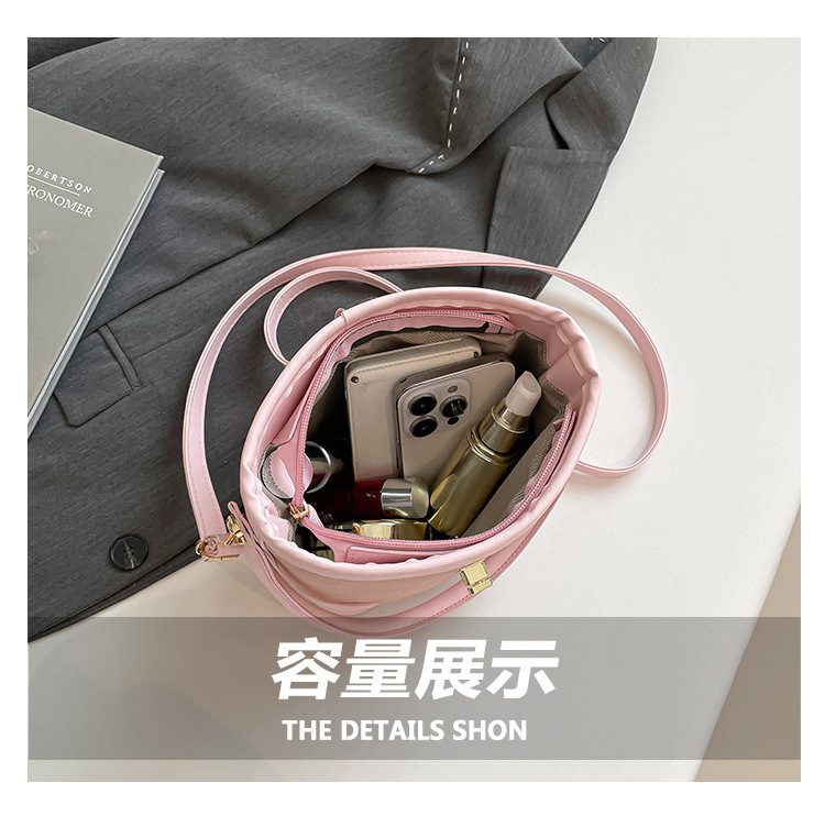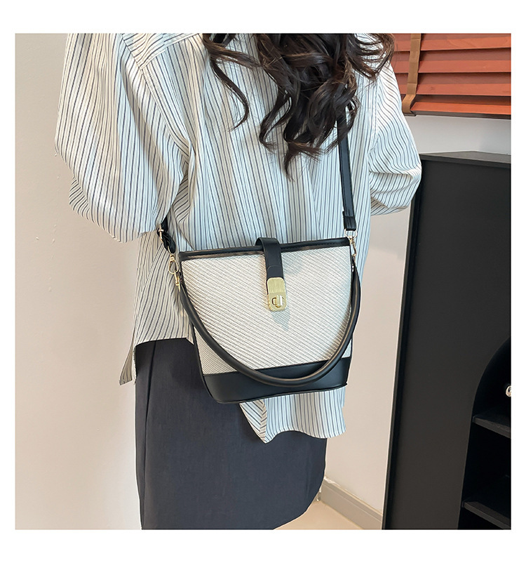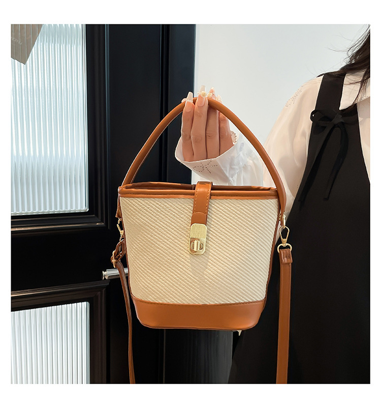 韩版简约包包女2025新款时尚撞色手拎水桶包通勤休闲斜挎女包网红