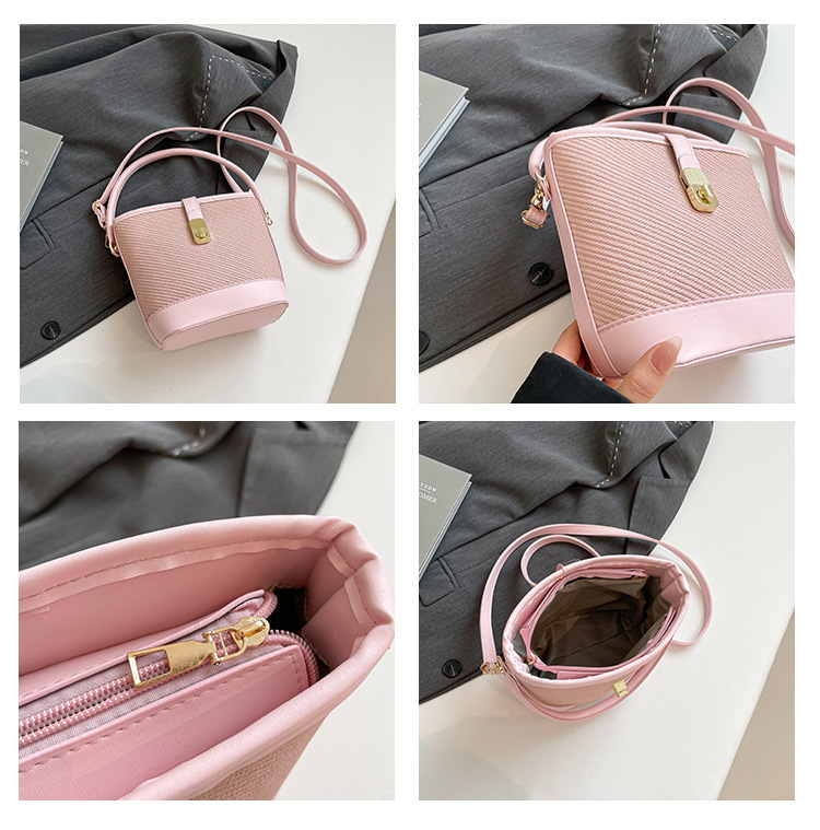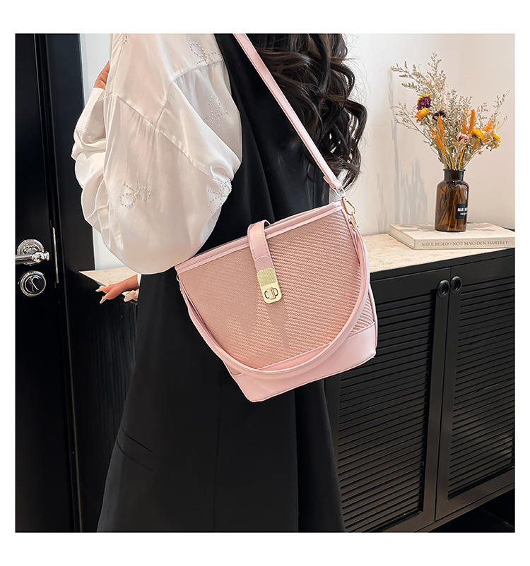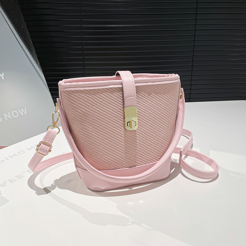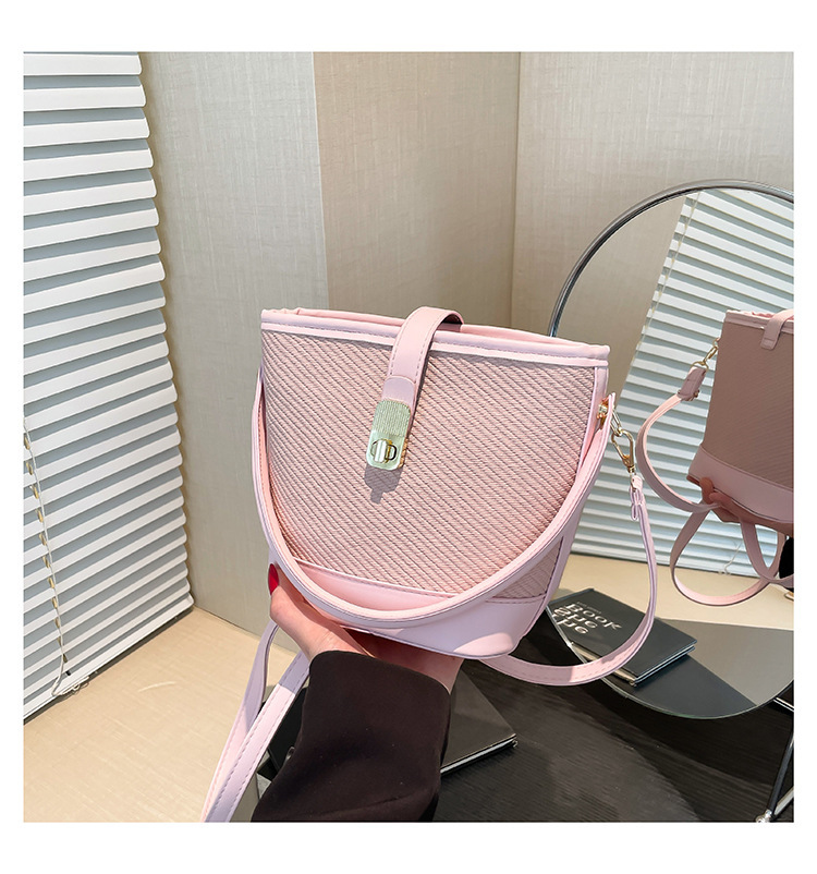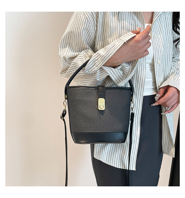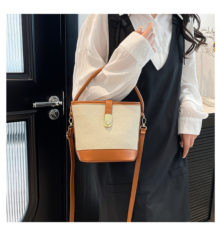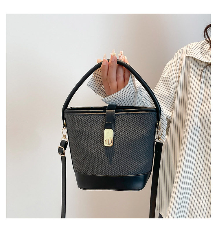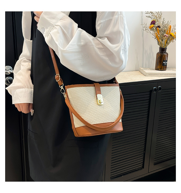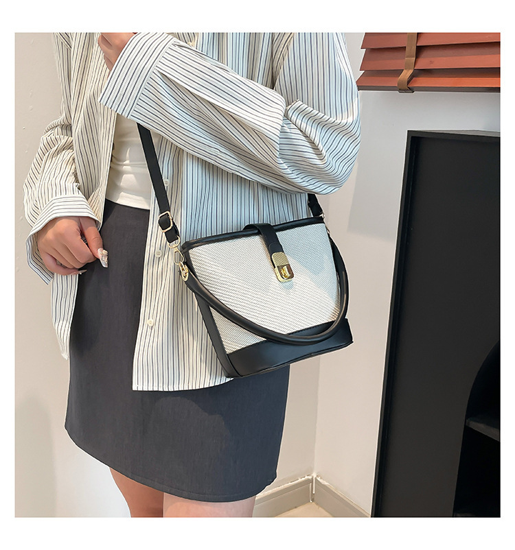 韩版简约包包女2025新款时尚撞色手拎水桶包通勤休闲斜挎女包网红