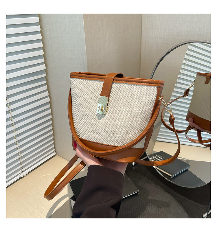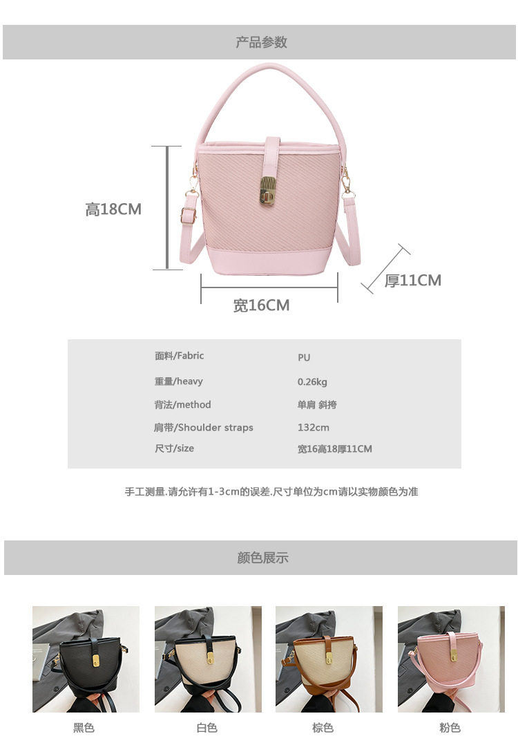 韩版简约包包女2025新款时尚撞色手拎水桶包通勤休闲斜挎女包网红 投诉