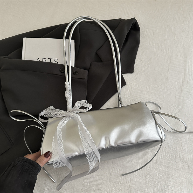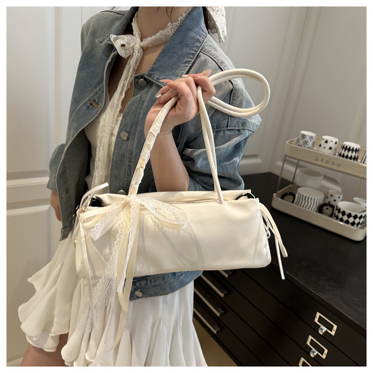 韩版简约ins法棍包女2025新款潮百搭通勤单肩包休闲蝴蝶结腋下包