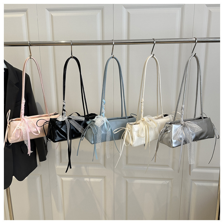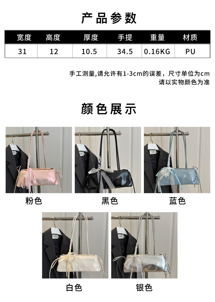 颜色: 粉色,蓝色,白色,黑色,银色 风格: 都市简约 货号: 飞2707 材质: PU 箱包潮流款式: 法棍包 箱包大小: 小 流行元素: 蝴蝶结,车缝线 上市年份季节: 2025年春季 里料质地: 涤纶 箱包形状: 横款方型 重量: 0.5 kg/个
