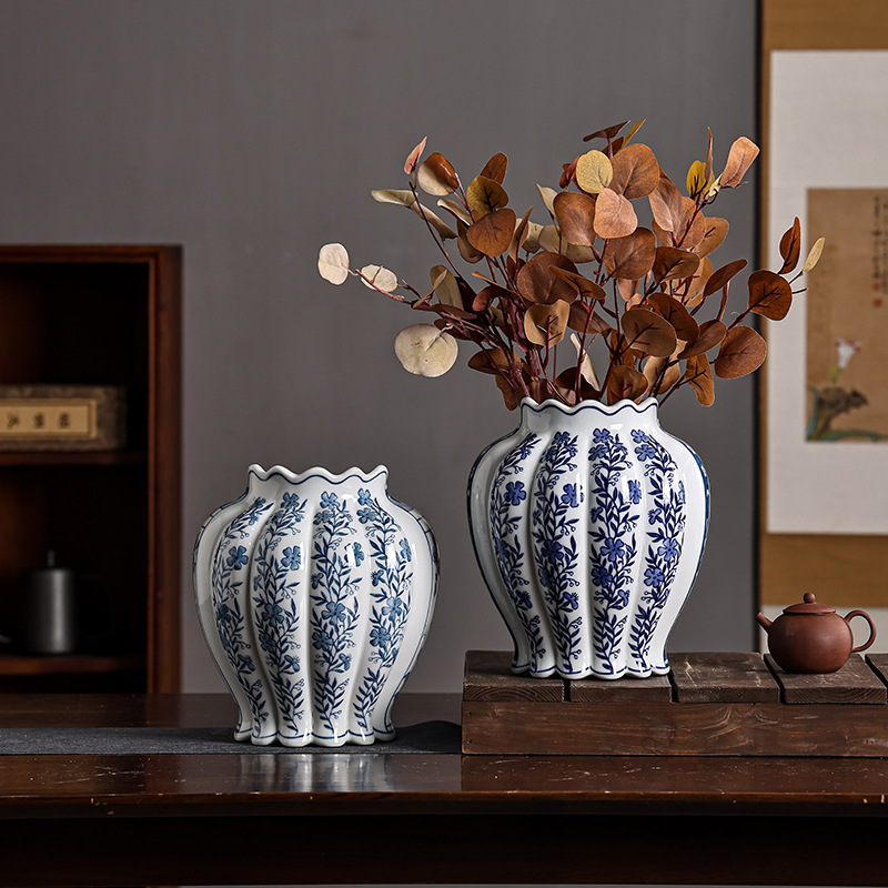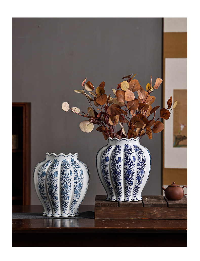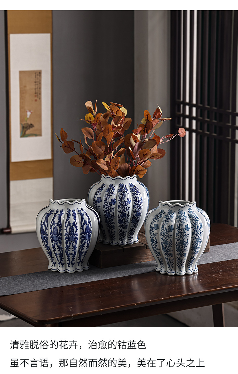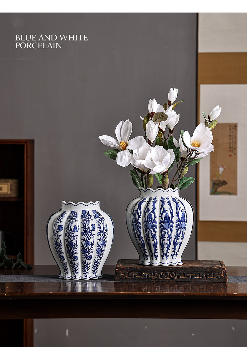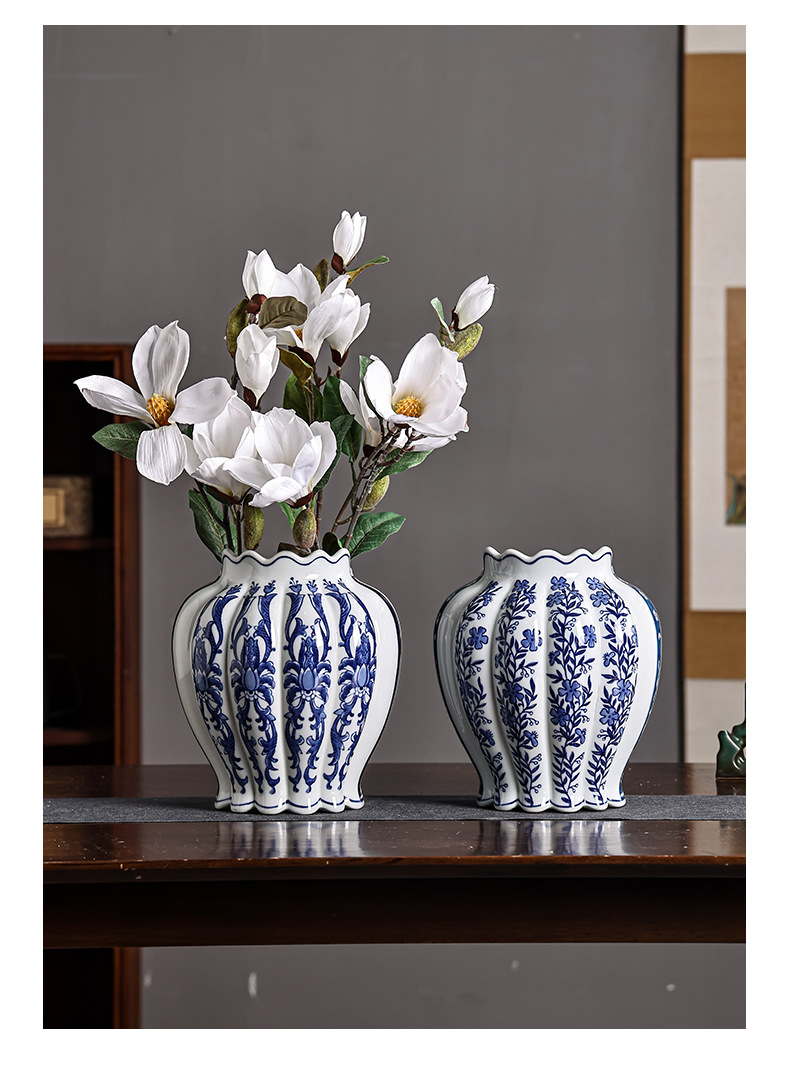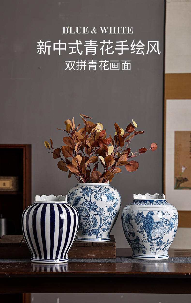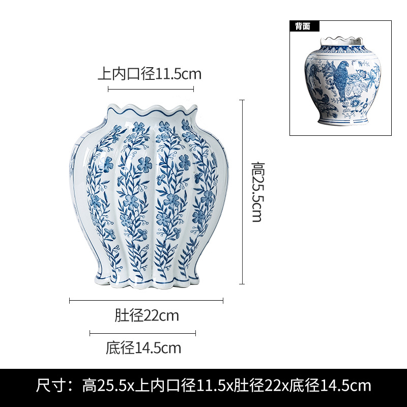 青花瓷陶瓷花瓶中西合璧花瓶意大利客厅玄关摆件双拼花瓶可水培 English | 投诉