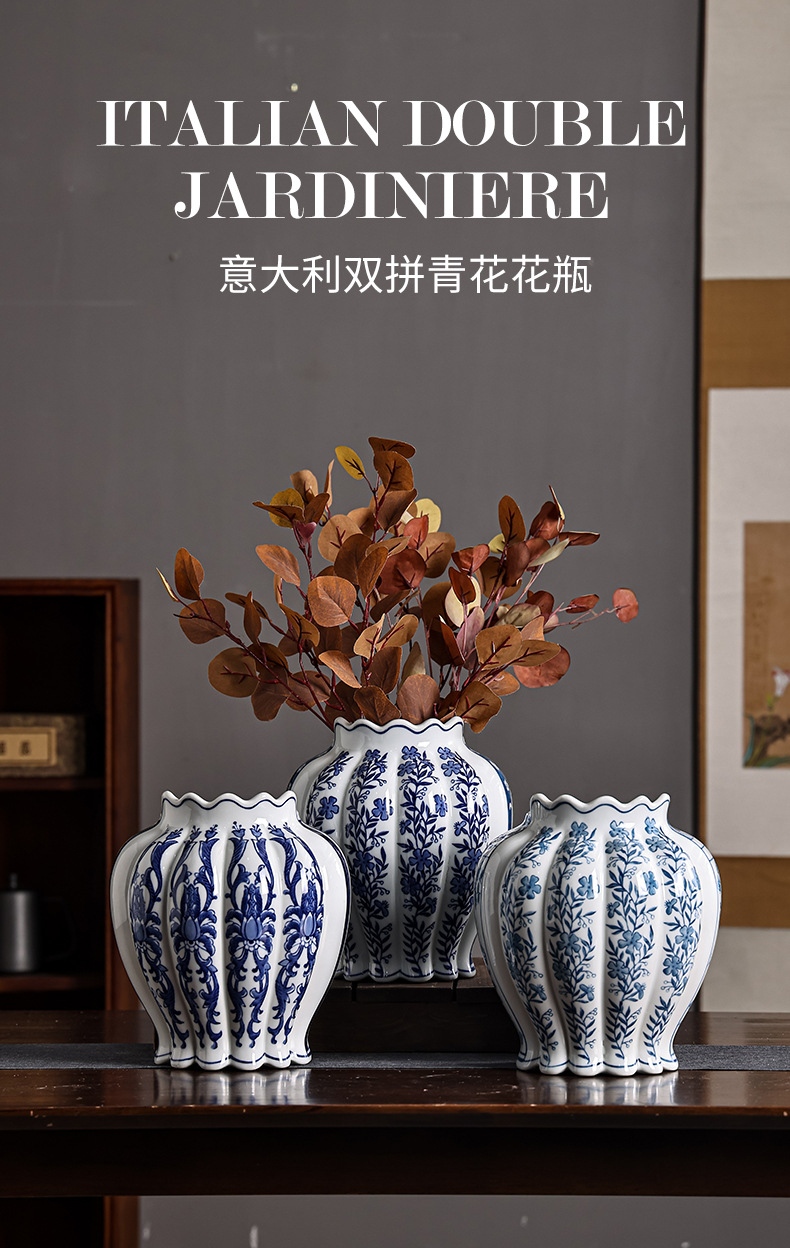 青花瓷陶瓷花瓶中西合璧花瓶意大利客厅玄关摆件双拼花瓶可水培