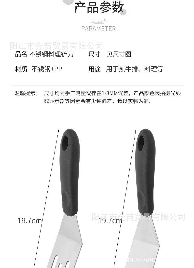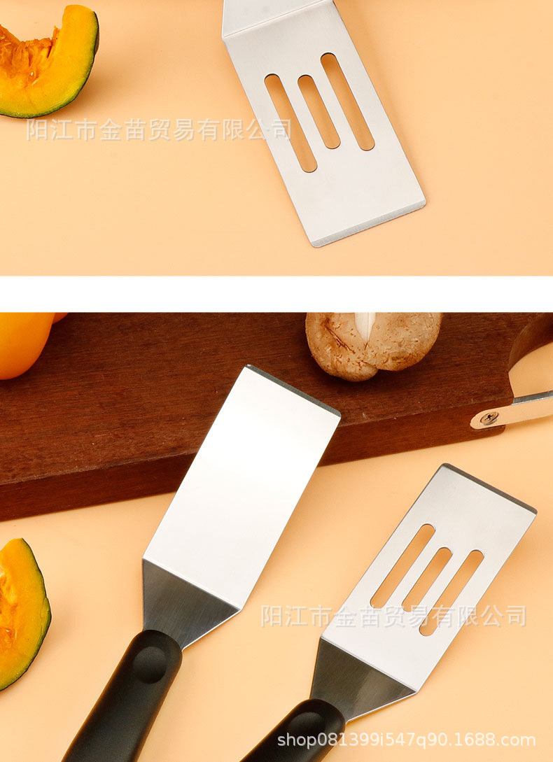 跨境不锈钢煎饼果子生煎锅铲铁板烧牛扒煎铲日式料理漏铲烹饪工具 投诉