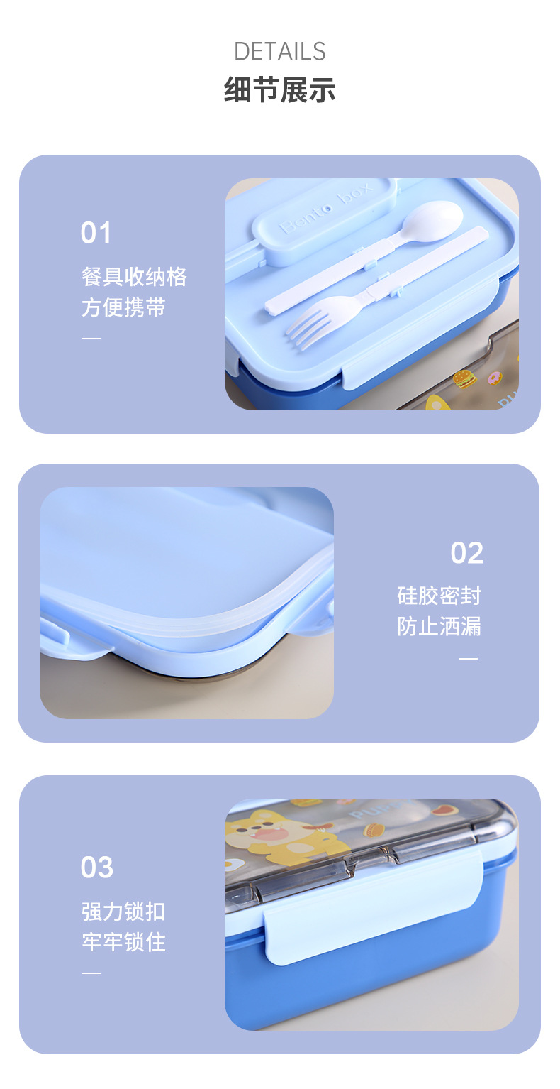 卡通不锈钢饭盒可进微波炉小学生密封便当盒带餐具密封分格上班族 English | 投诉