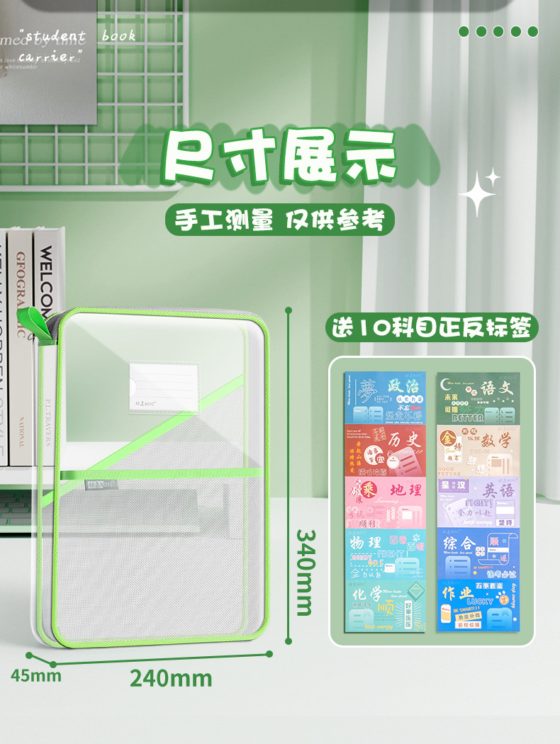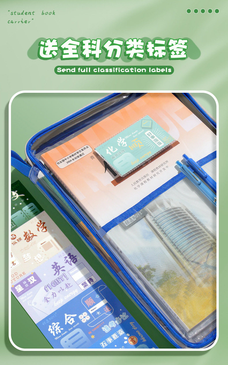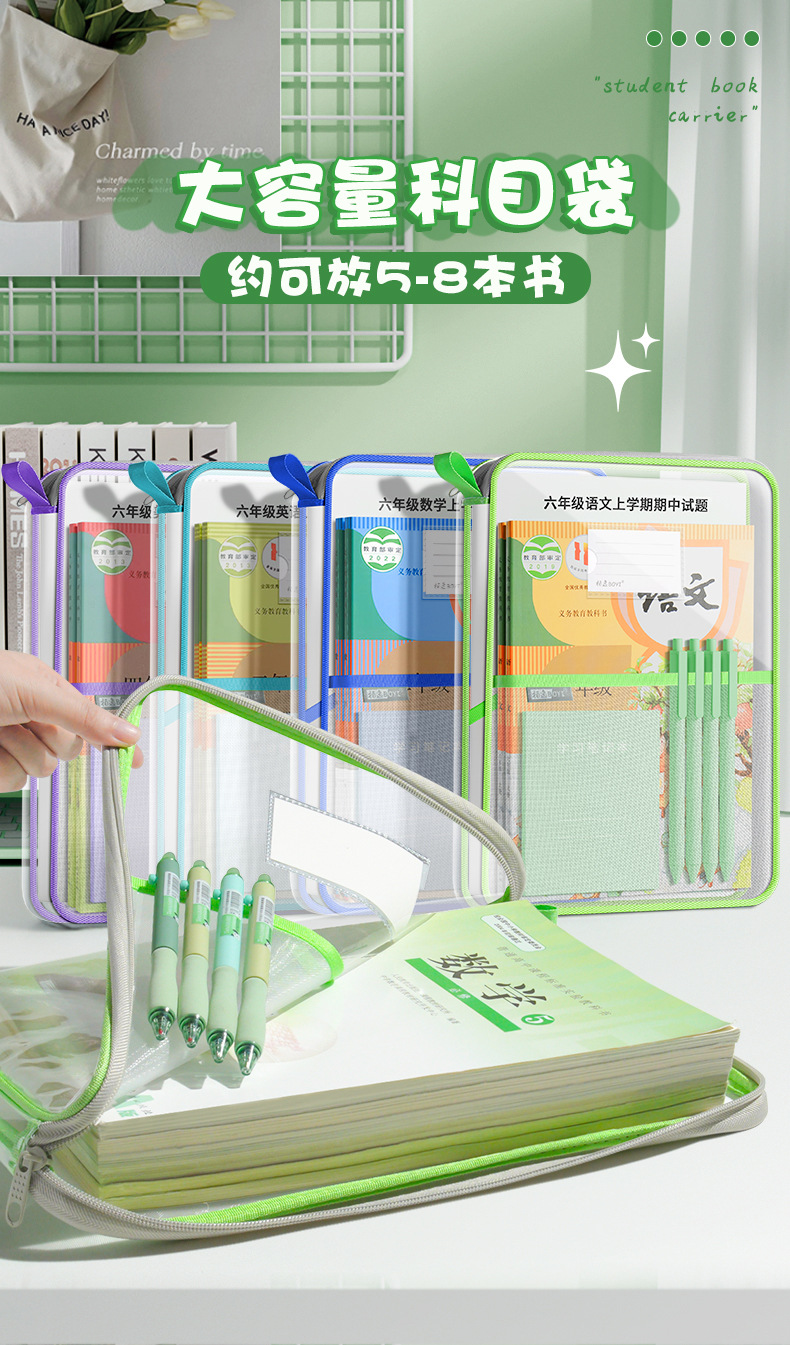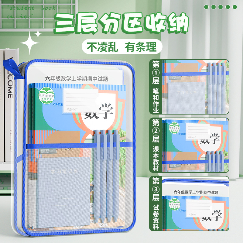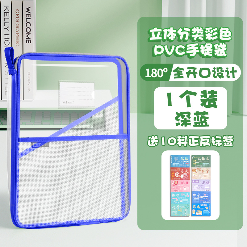 L型手提袋学生考试用资料整理收纳大容量科目袋PVC防水多层文件袋