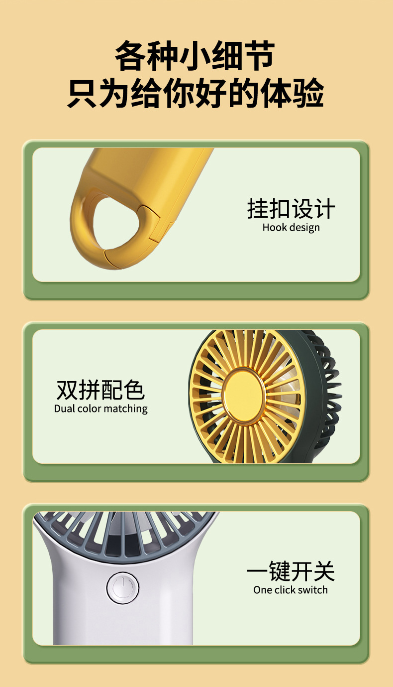 【产品名称】:手持USB充电挂扣风扇