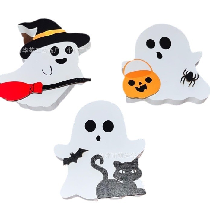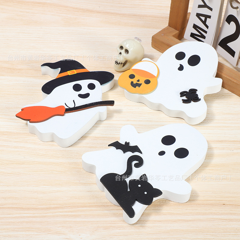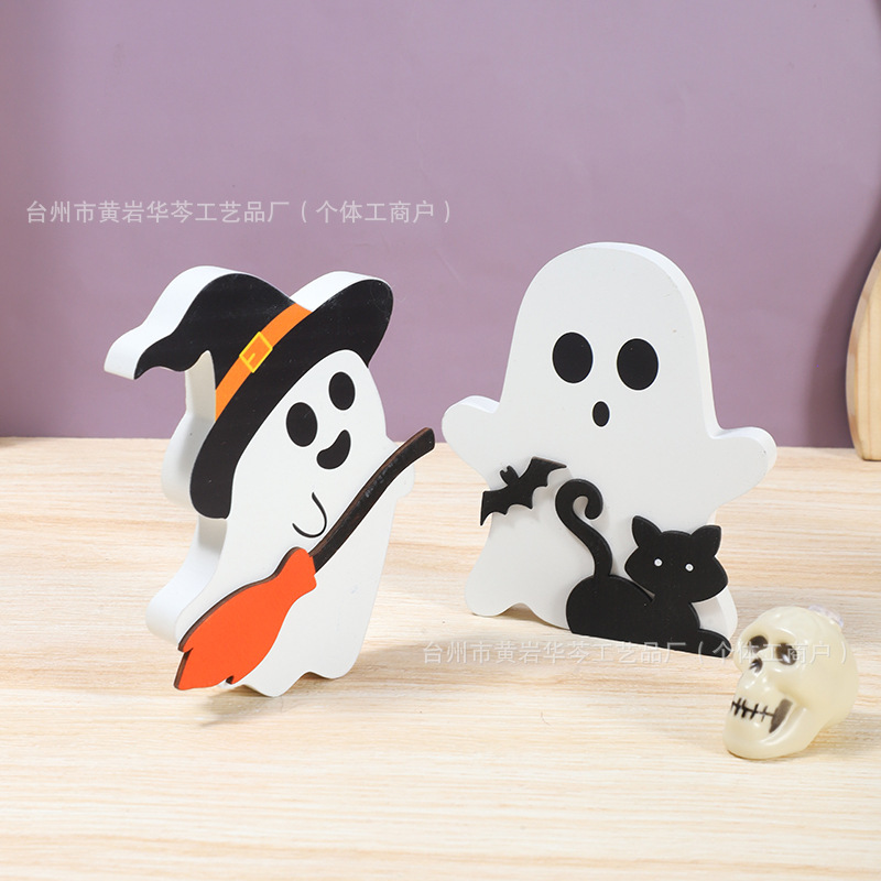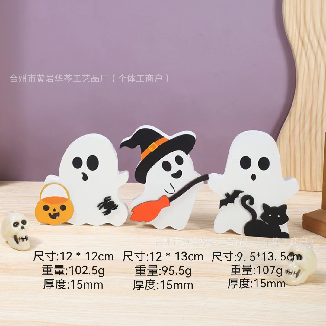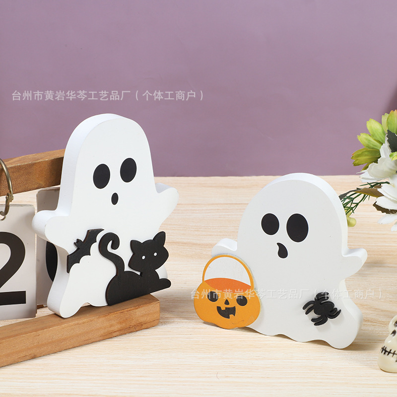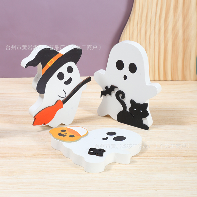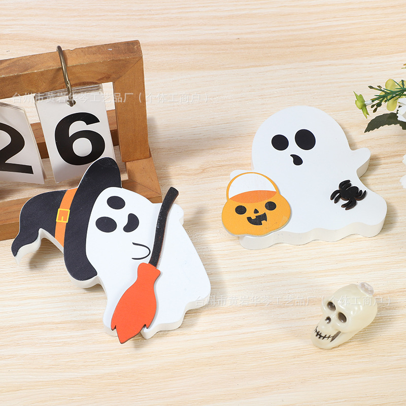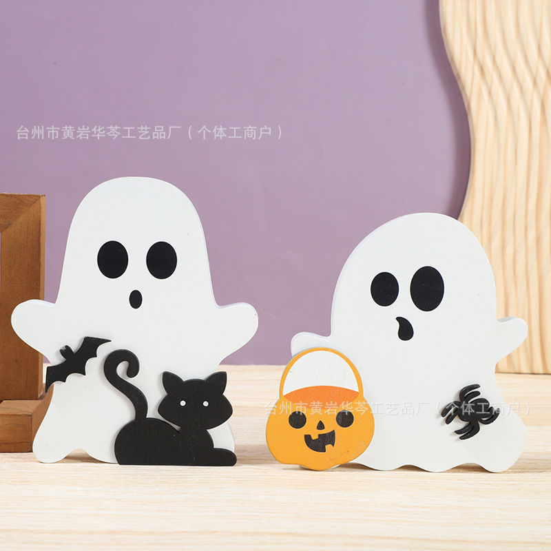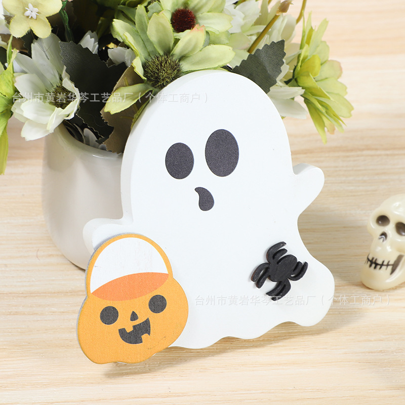 亚马逊爆款万圣节小摆件木质幽灵装饰品居家派对摆件木制工艺品