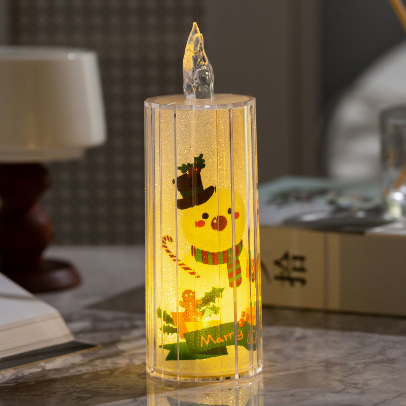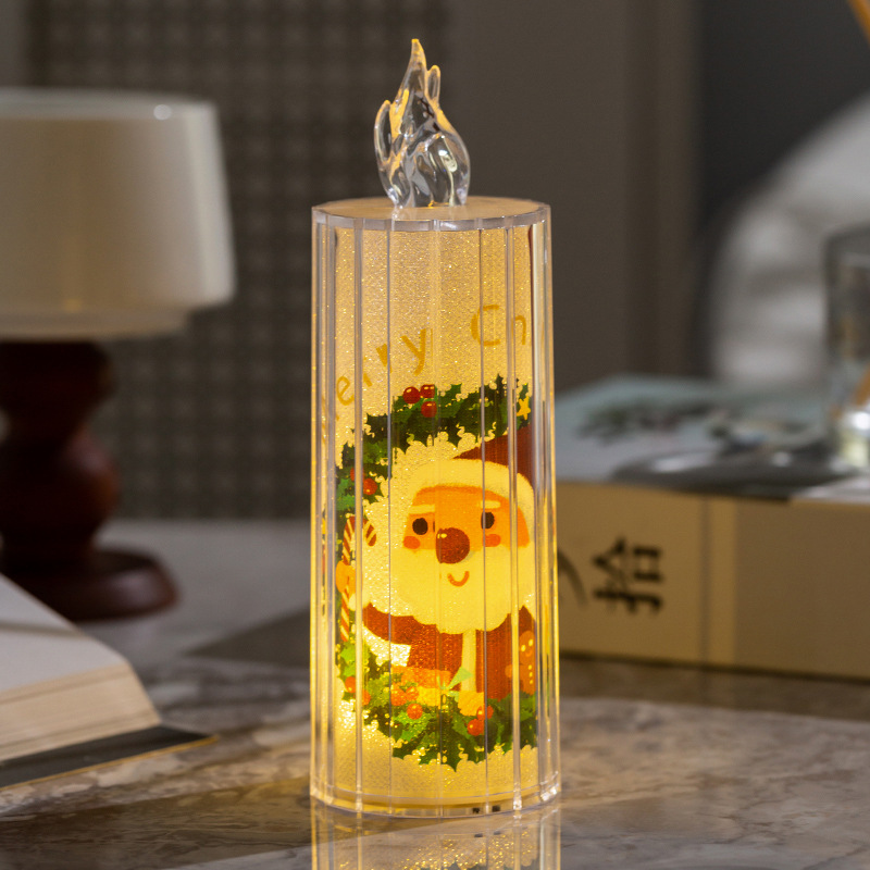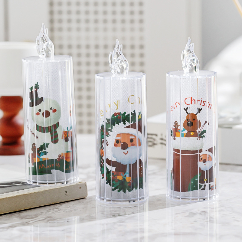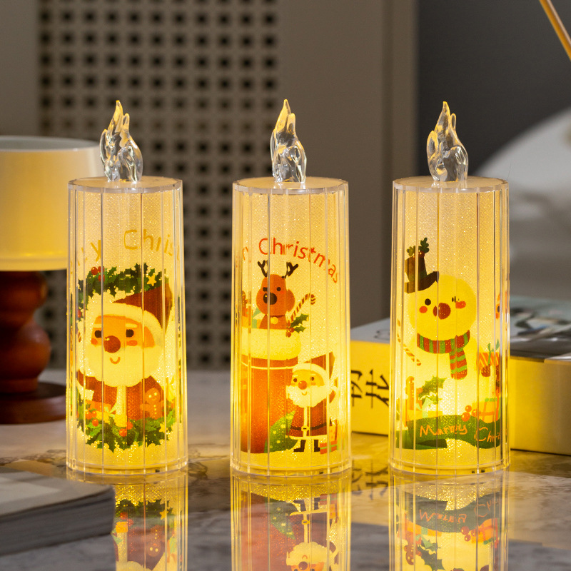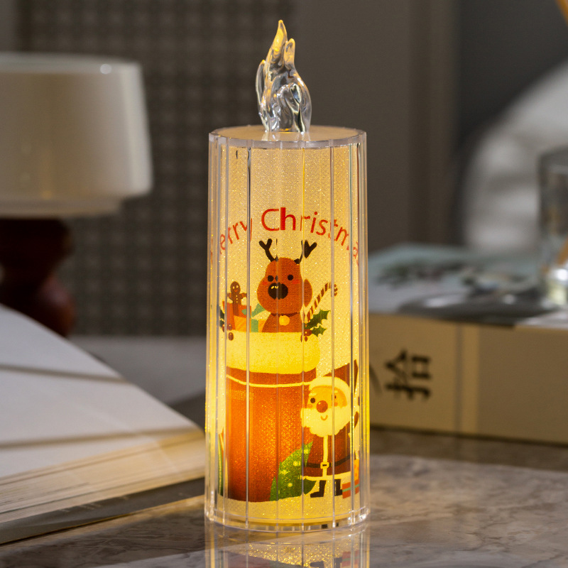 圣诞节装饰品透明水晶led仿真电子蜡烛节日装扮ins桌面摆件小夜灯