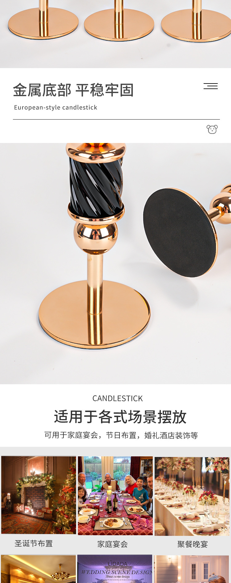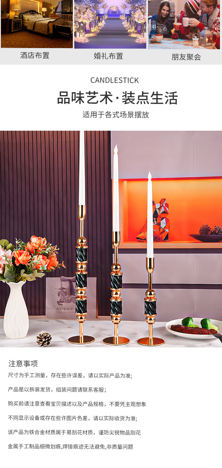 跨境金属烛台高级感杆蜡婚庆烛光晚餐餐桌装饰摆件圣诞节样板间