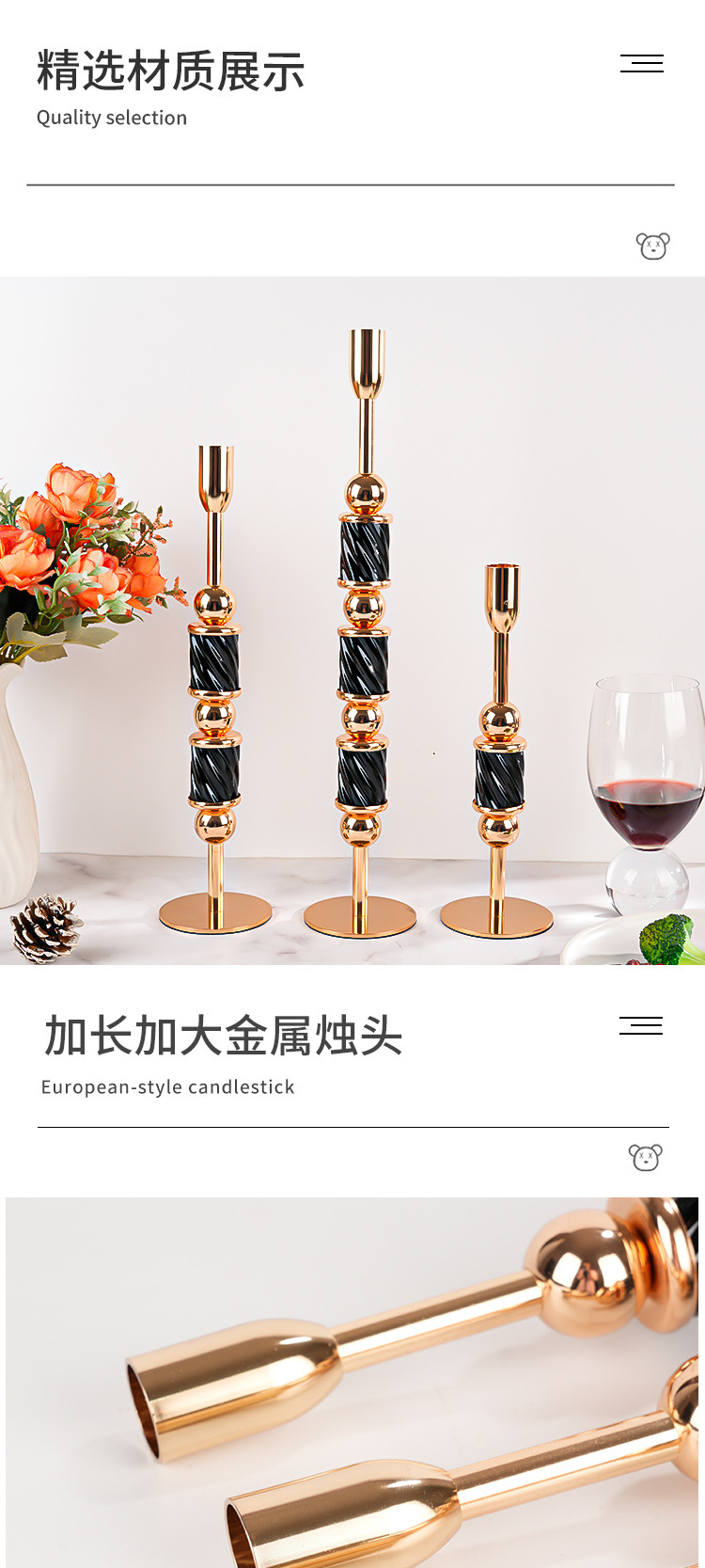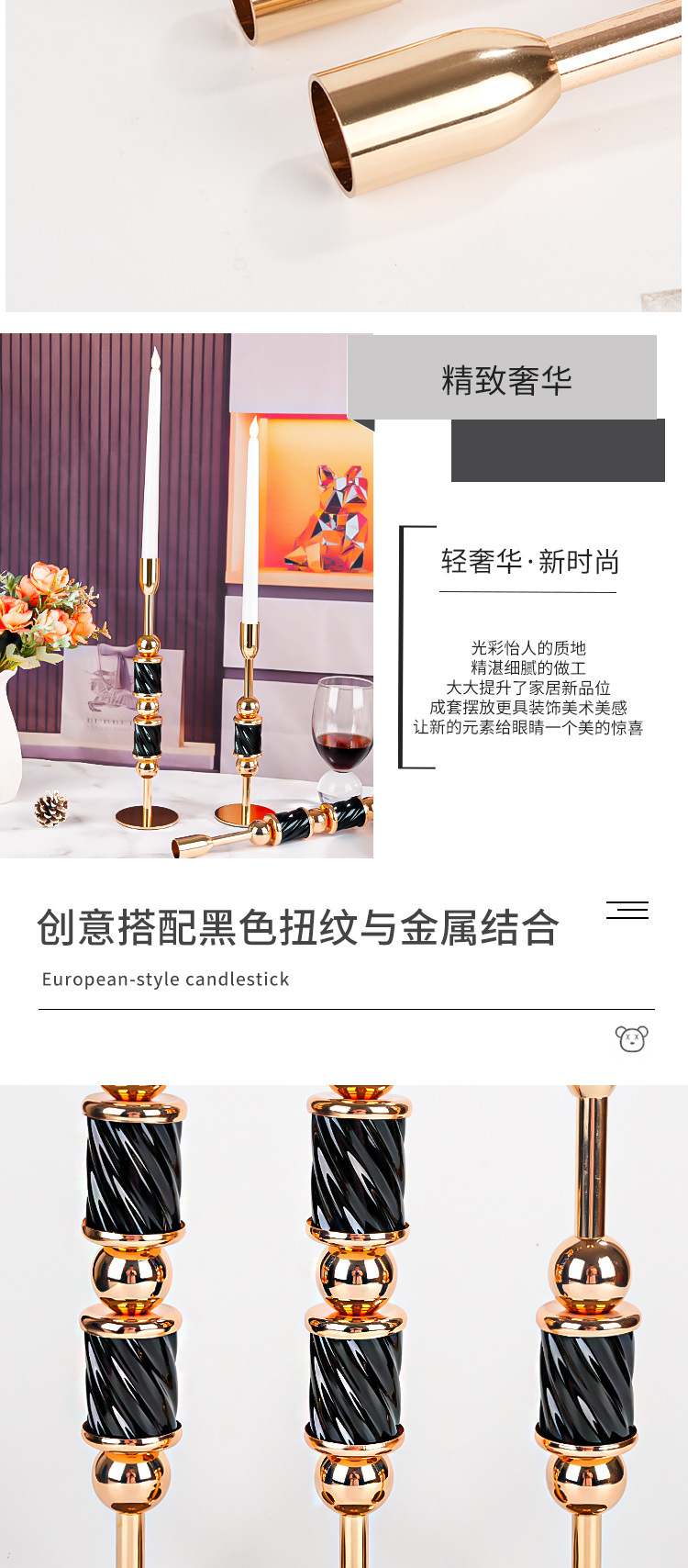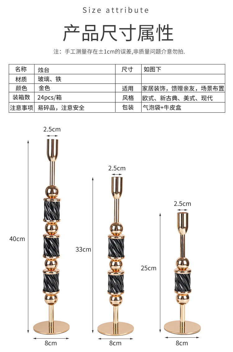跨境金属烛台高级感杆蜡婚庆烛光晚餐餐桌装饰摆件圣诞节样板间 投诉